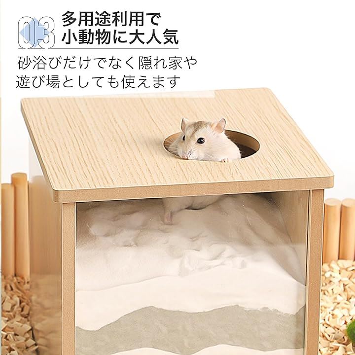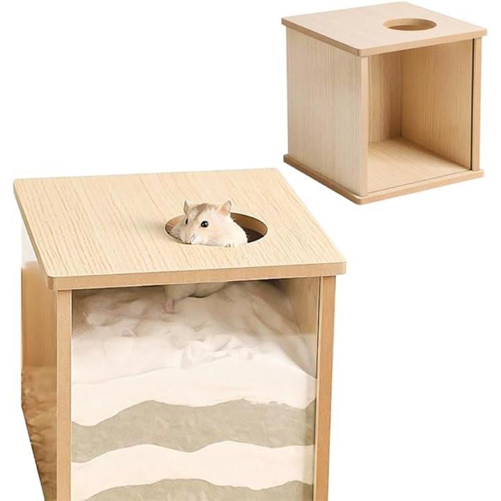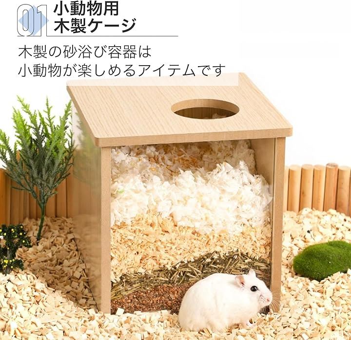 ハムスター 砂浴びチンチラハウス 砂場 隠れ家 お風呂 モルモットハウス 木製 20x20x20cm