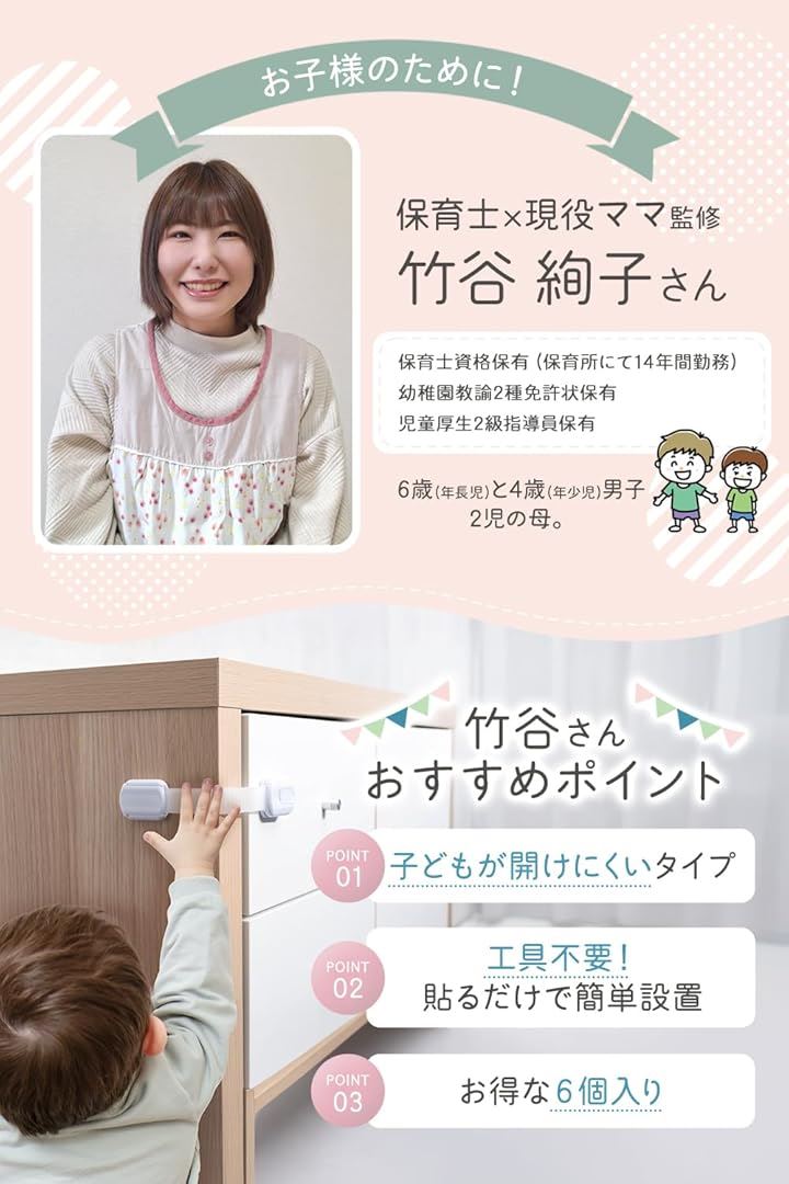 チャイルドロック 引き出しロック保育士x現役ママさん監修子どものいたずら防止用x設置は貼るだけx6個セット