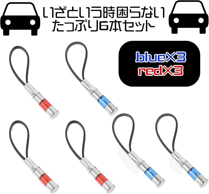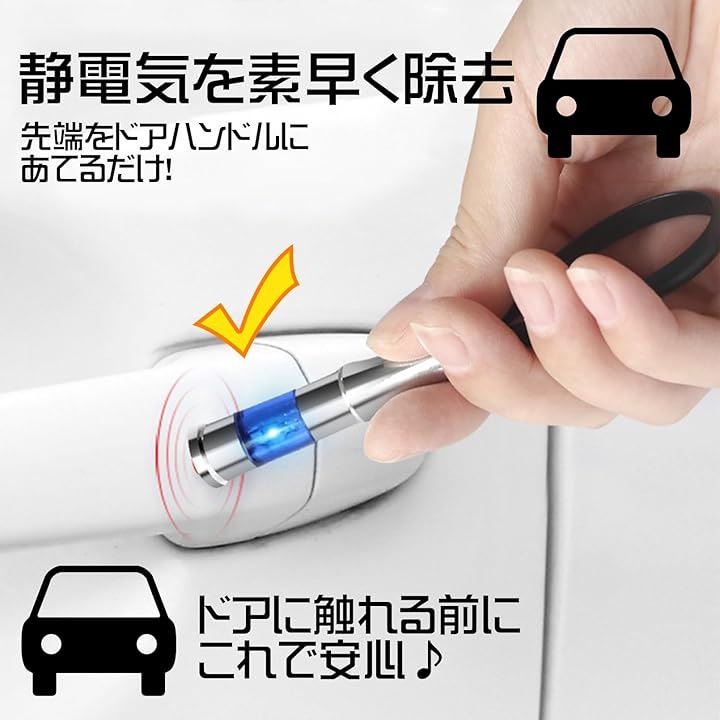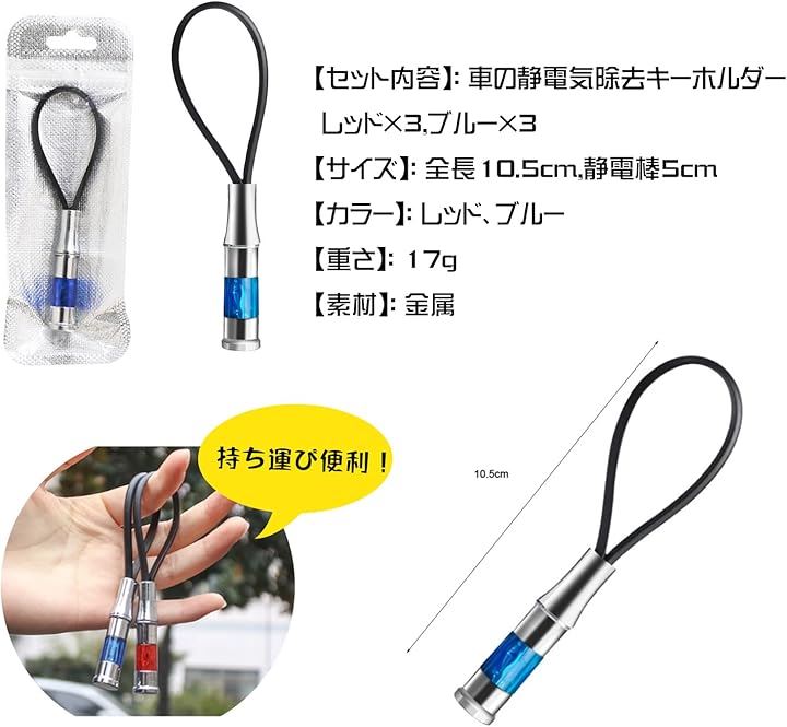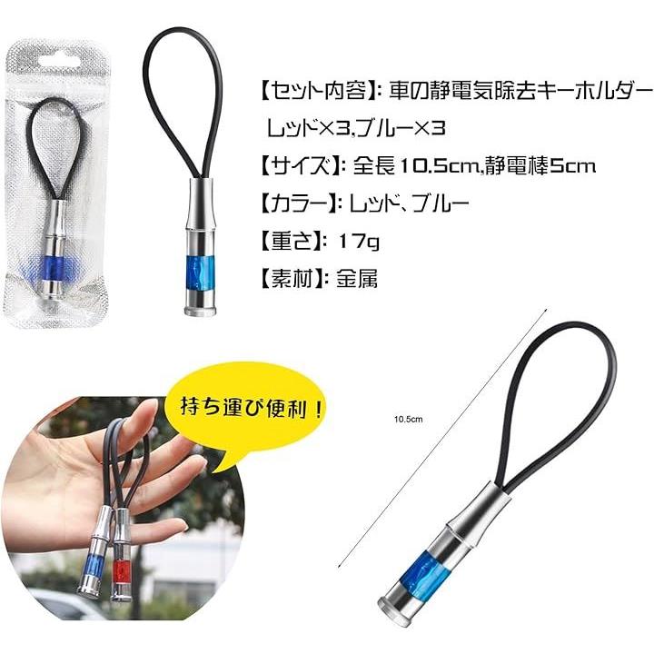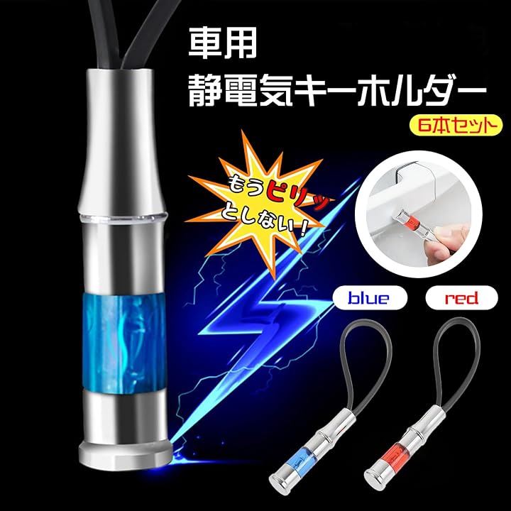 車 静電気除去 キーホルダー キーチェーン 静電気防止 放電器 帯電防止ロッド カー用品 レッド ブルー 6個セット