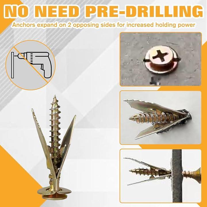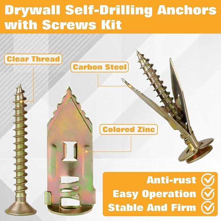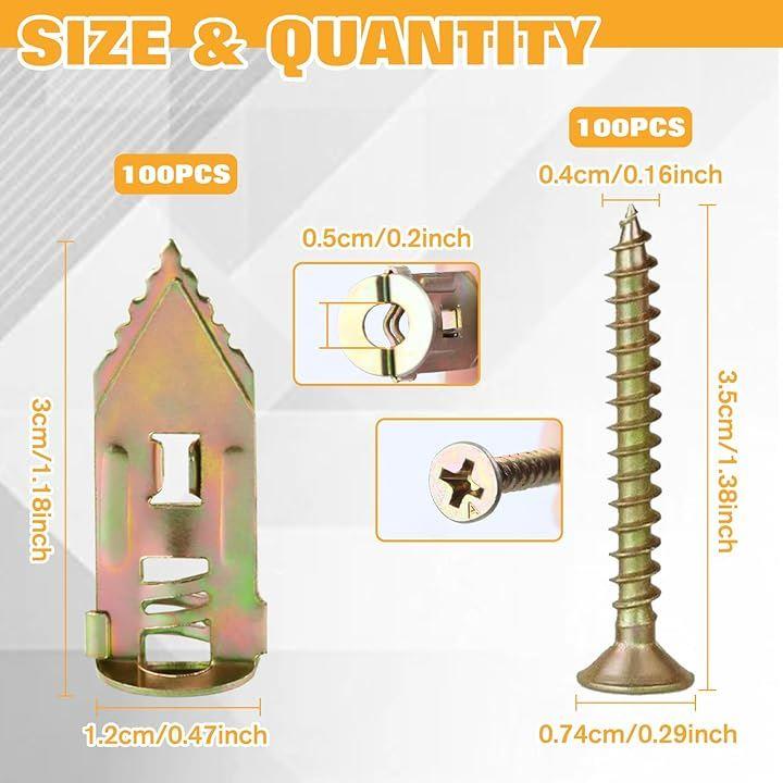 乾式壁用石膏ネジ 乾式壁用セルフドリリングアンカー アンカーとネジキット ボードアンカー 石膏ボード 100セット 石こうボード壁用アンカー ネジ付き 打込みアンカー らくらくボードアンカー 小型 中空壁アンカー