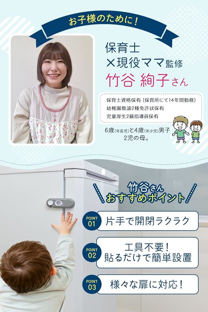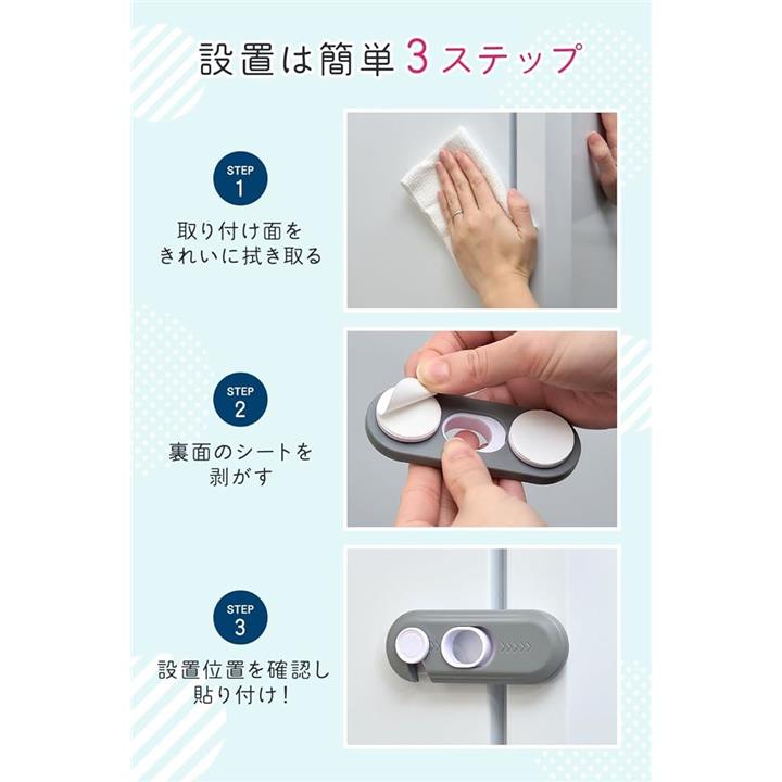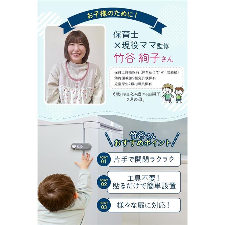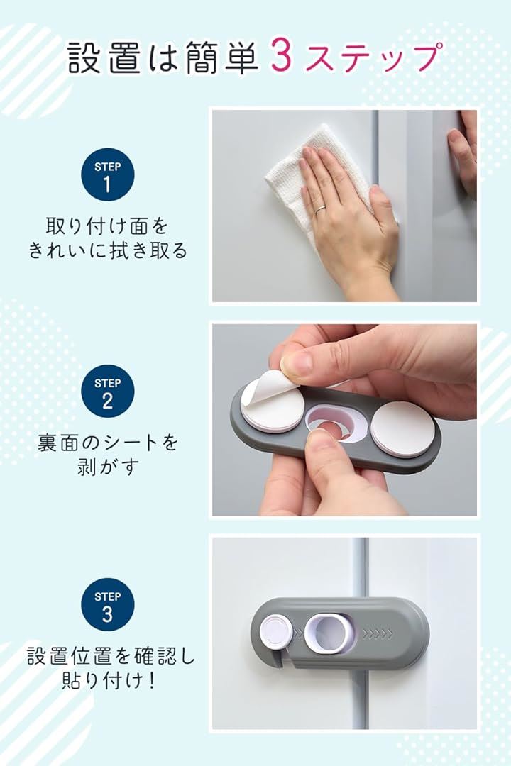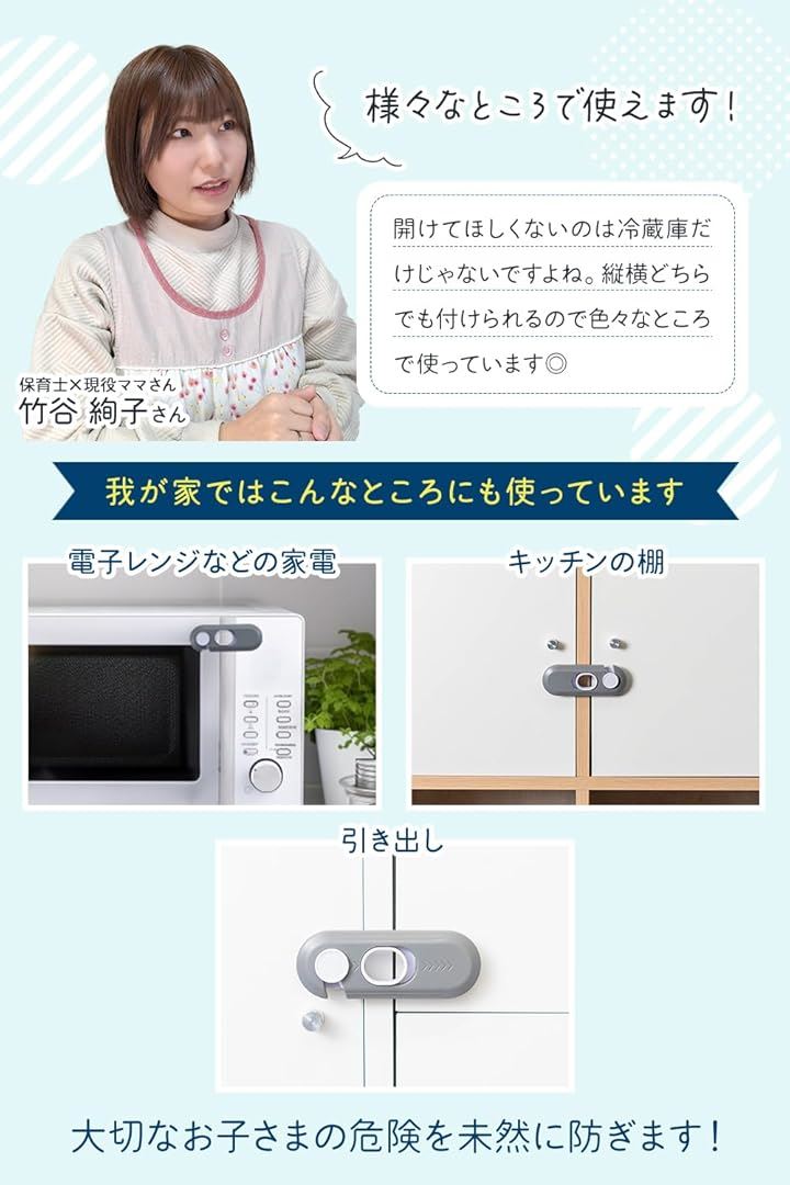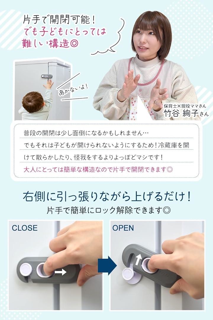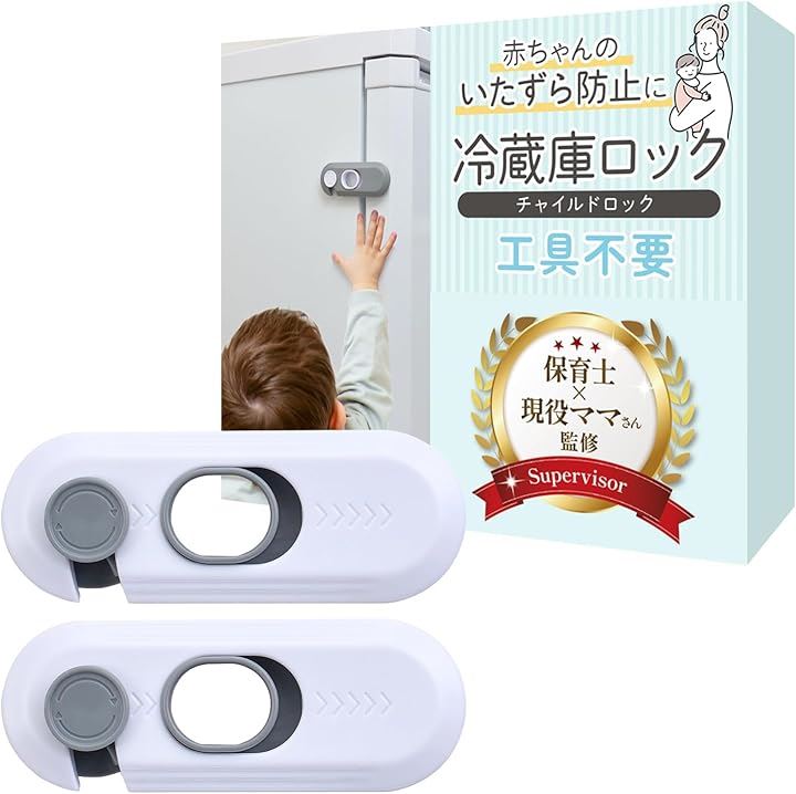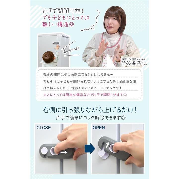 冷蔵庫ロック チャイルドロック 2個入り保育士x現役ママさん監修子どものいたずら防止にx片手で開閉可能x設置は貼るだけ