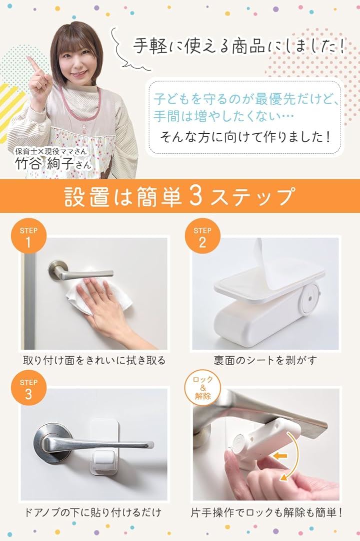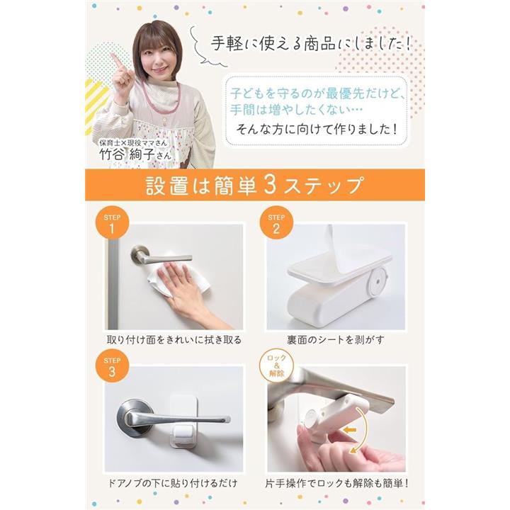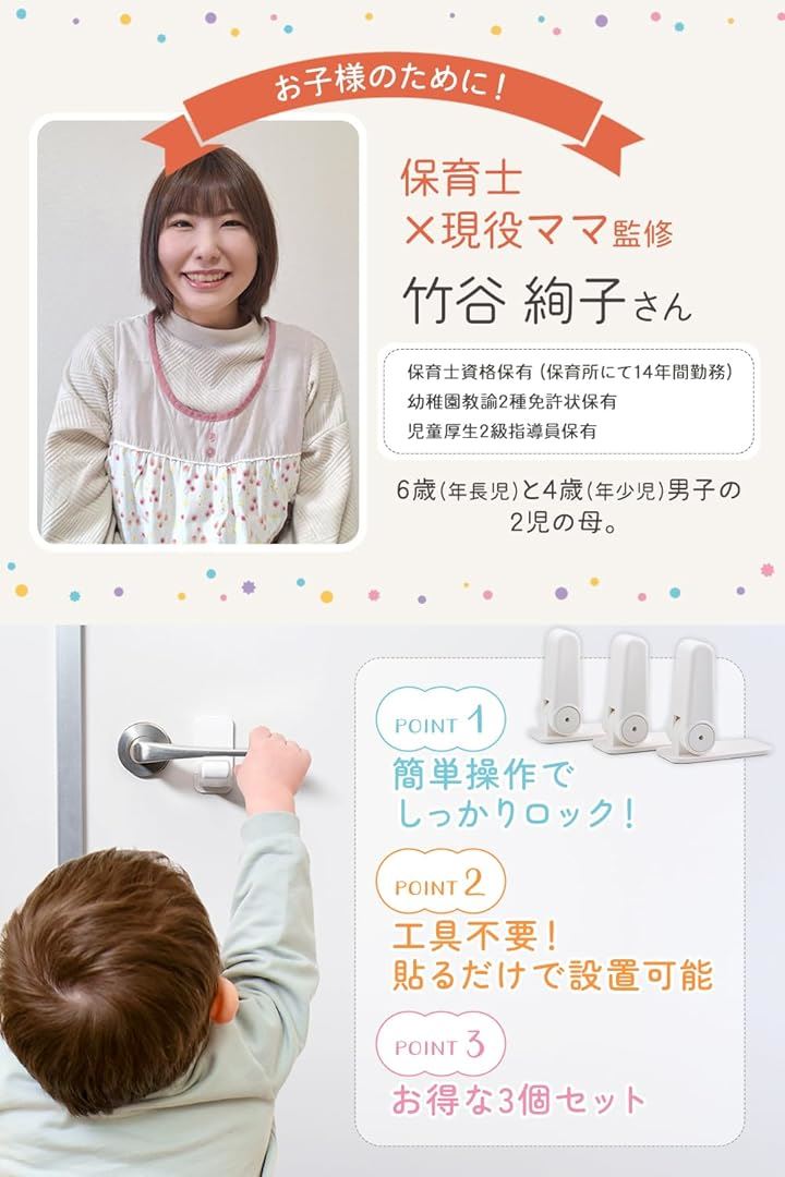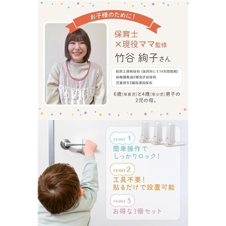 ドアロック 3個入保育士x現役ママ監修 子どものいたずらや事故防止にxワンタッチ操作x設置は貼るだけ