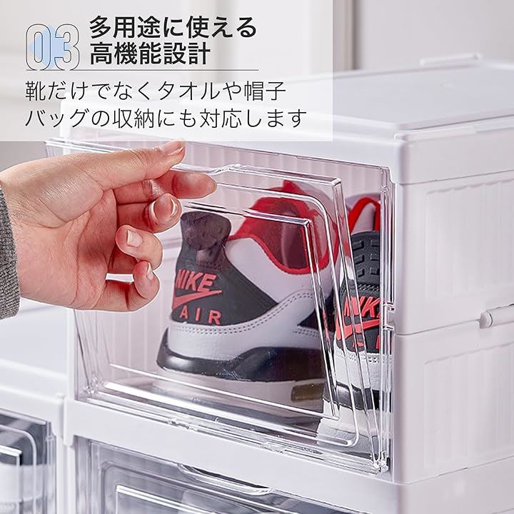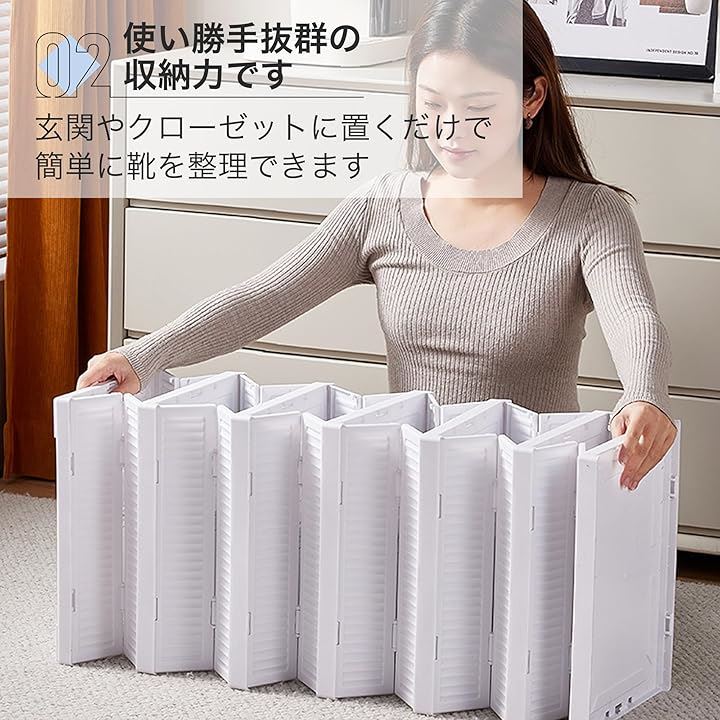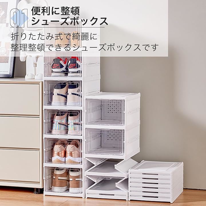 シューズボックス スニーカーケース シューズラック 靴箱 スリム 靴棚 折りたたみ ふた付き おしゃれ ホワイト