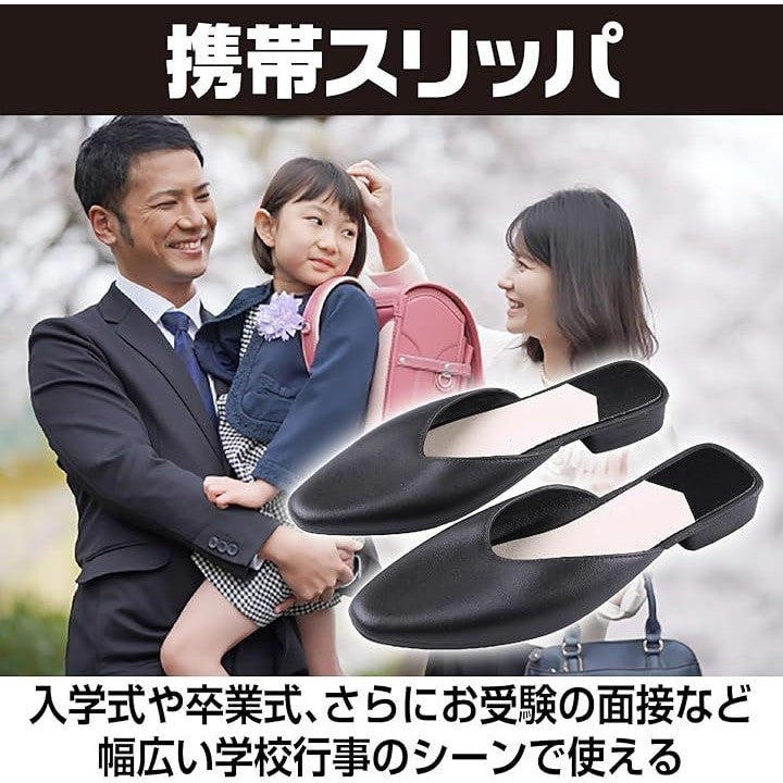 携帯スリッパ ルームシューズ ヒール 厚底 レディース おしゃれ 黒色 室内 保護者 卒業式 入学式 授業参観用 学校行事