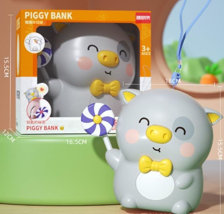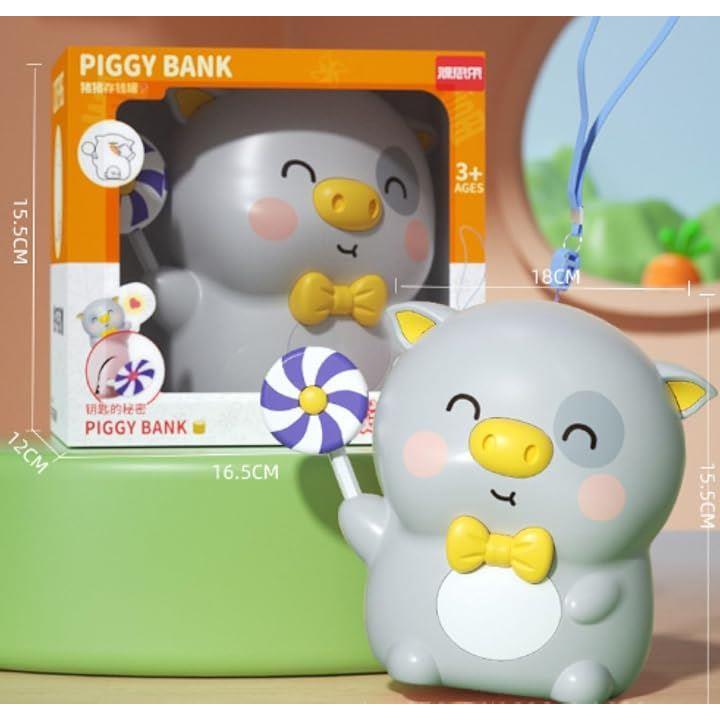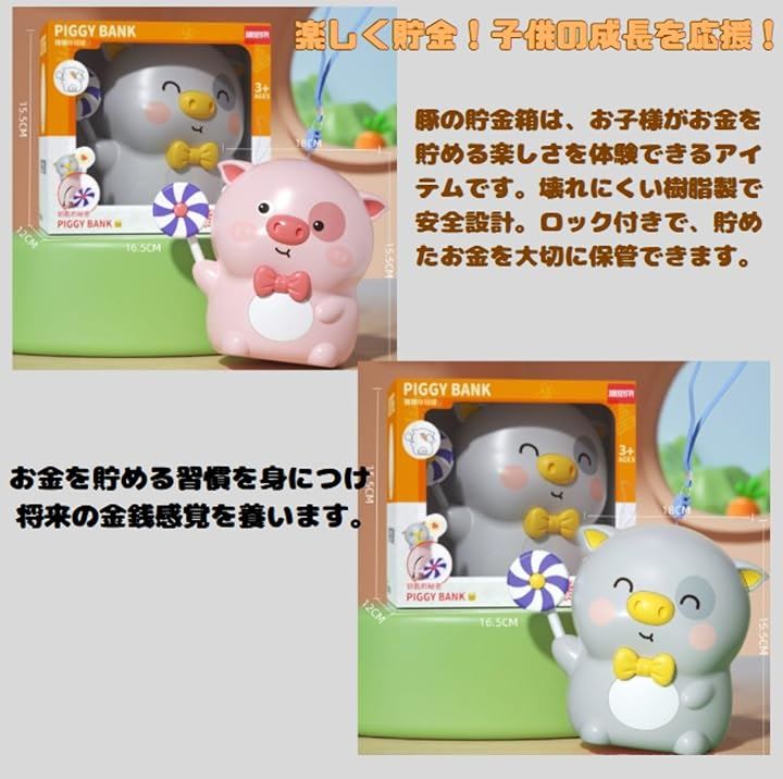 貯金箱 豚コインバンク キッズ ブタ型 壊れない 子供用 マネーバンク お金箱 樹脂製 ロック付き (1, グレー) |