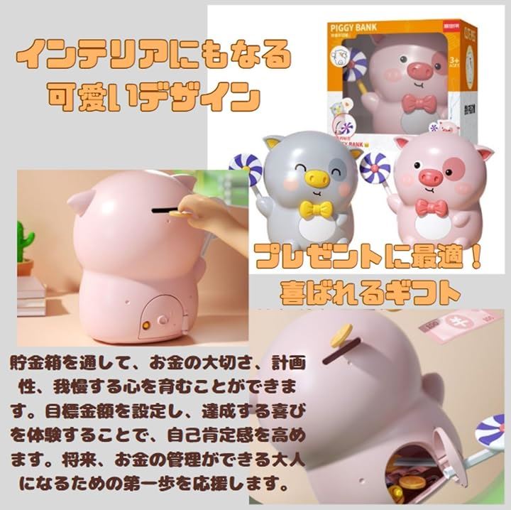 カートゥーンデザインのかわいいブタが、貯金を楽しい冒険に変え、子供たちが自分の目標に向かって貯金する意欲を高めます。