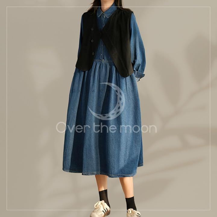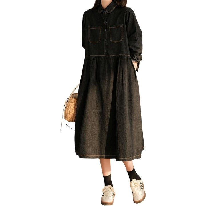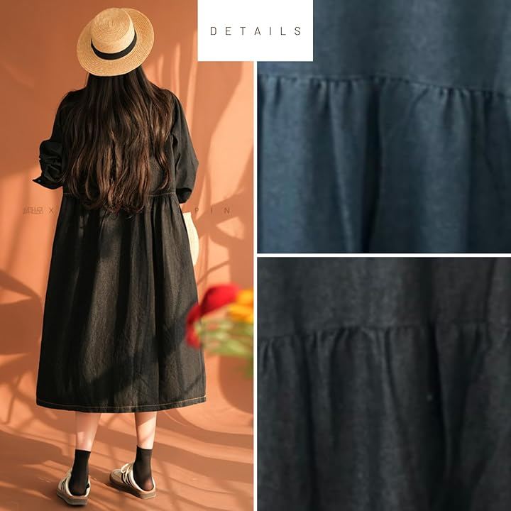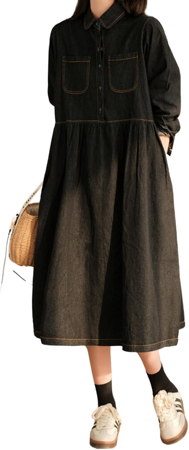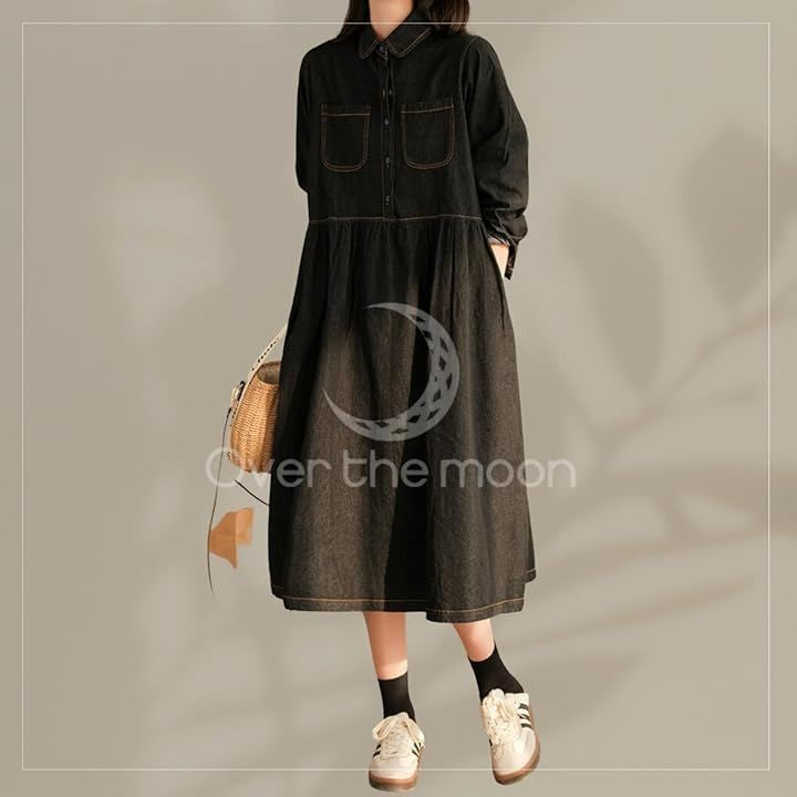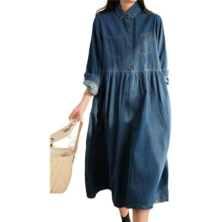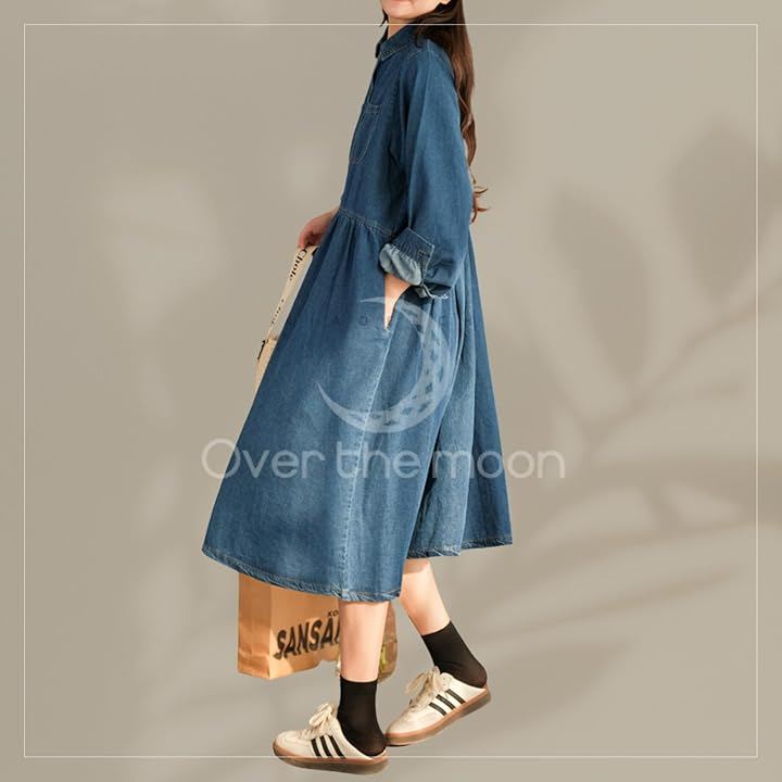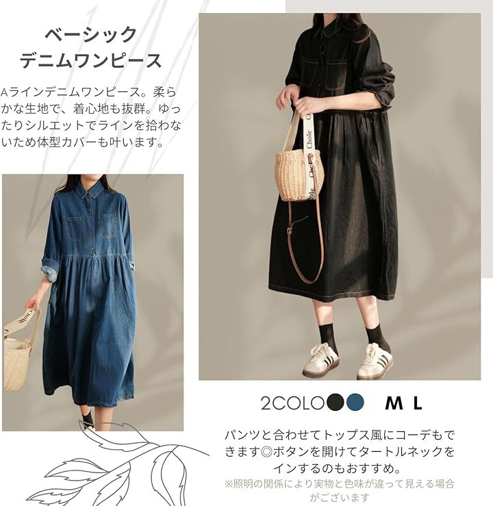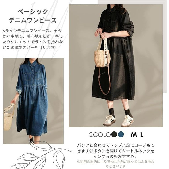 デニムワンピース レディース 長袖 デニムシャツワンピース マタニティ チュニック 着痩せ 40代 無地 秋