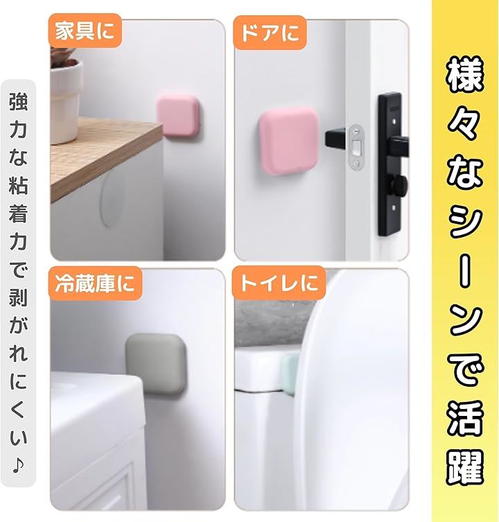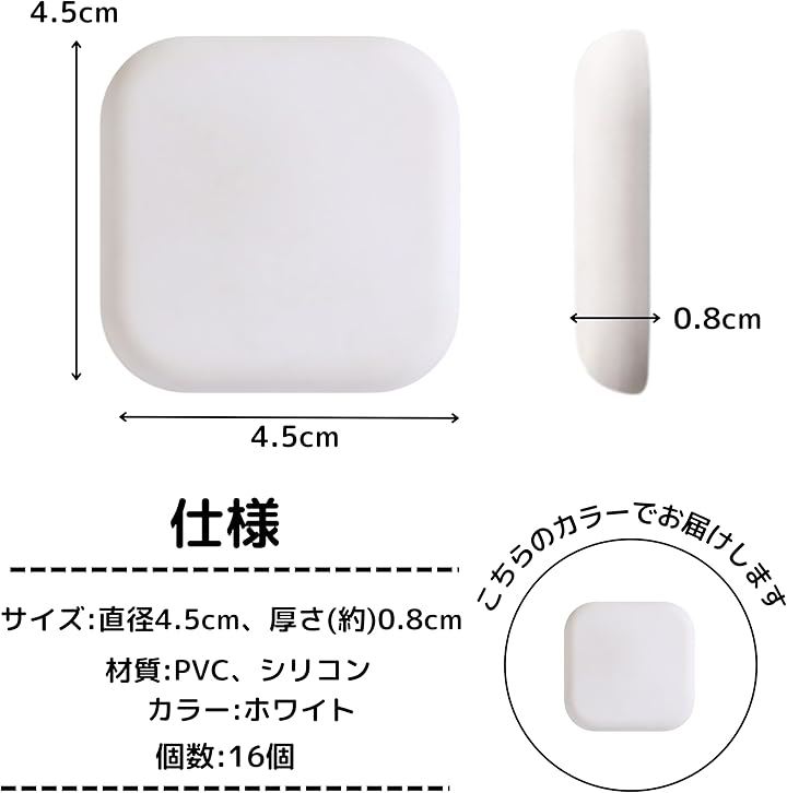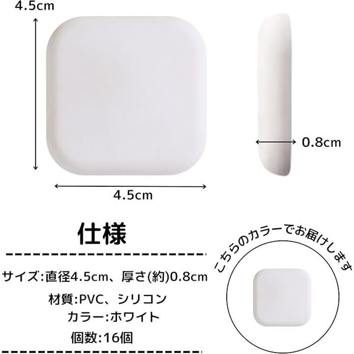 戸当たりクッション 壁 保護 クッションドア 冷蔵庫 扉 衝突防止 衝撃音 キズ防止 滑り止め シリコン スクエア 白 16個入り