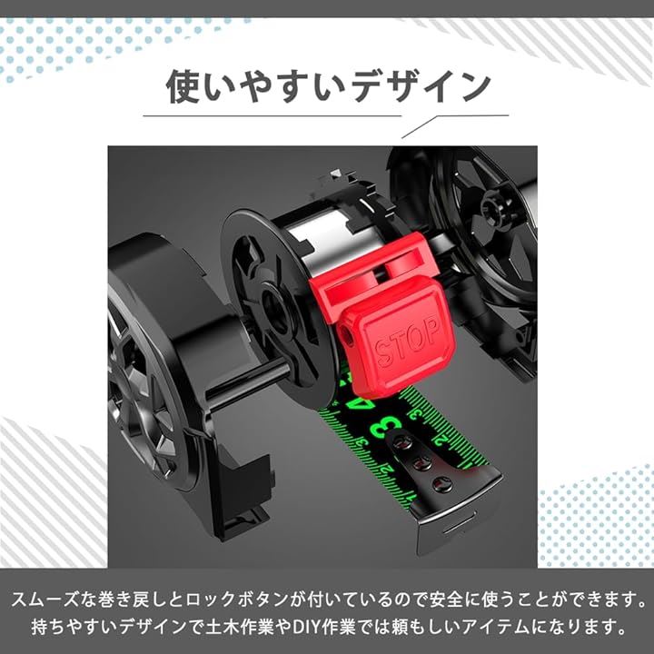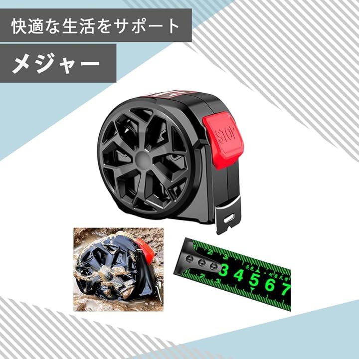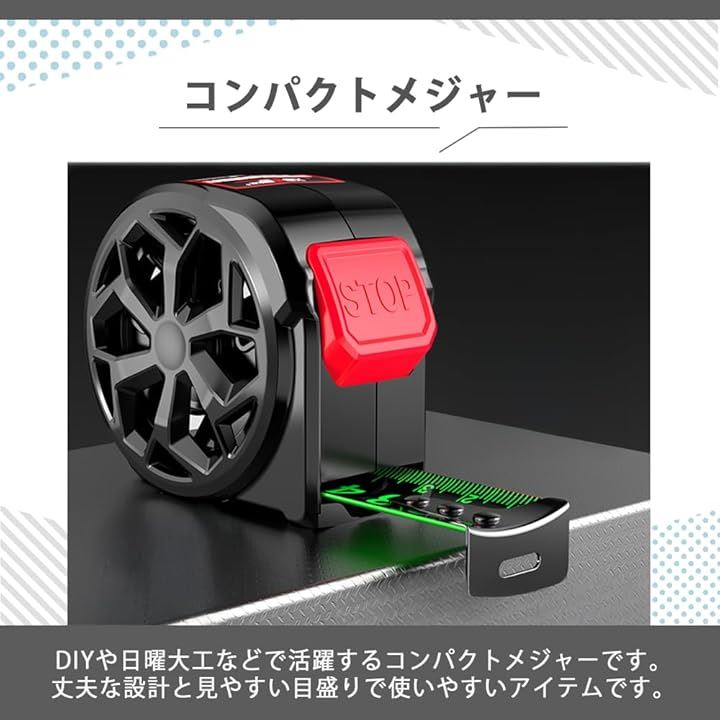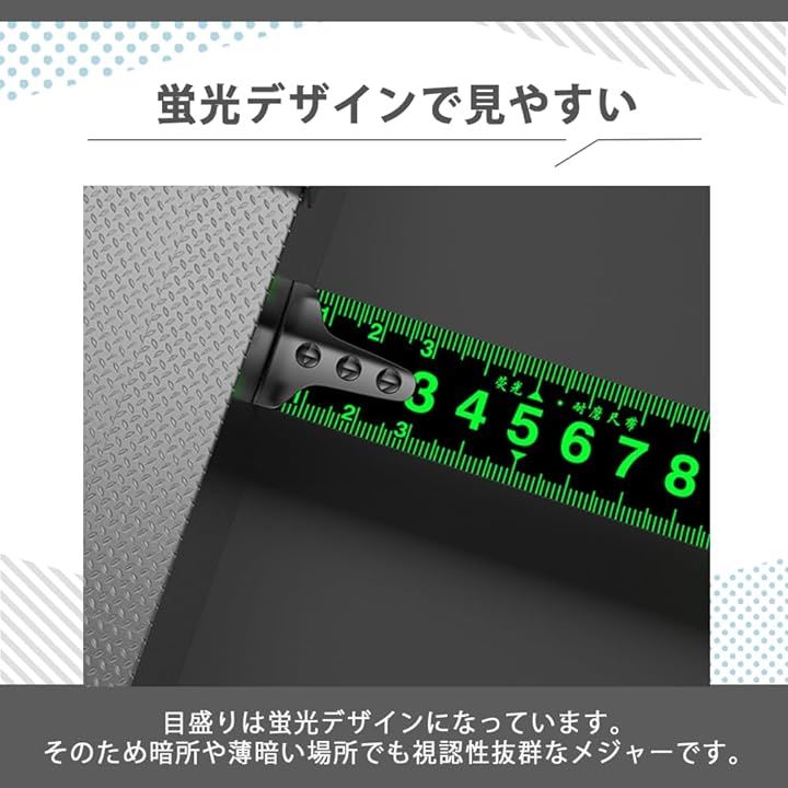 スケール メジャー 5m 巻き尺 測量 ストッパー付き 蛍光デザイン コンパクト 目盛りが見やすい
