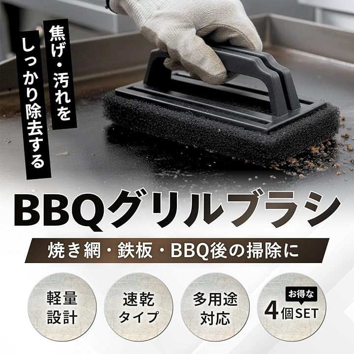 バーベキューブラシ グリルブラシ こげとり 汚れ取り 網 鉄板 キャンプ BBQ 掃除 4個セット