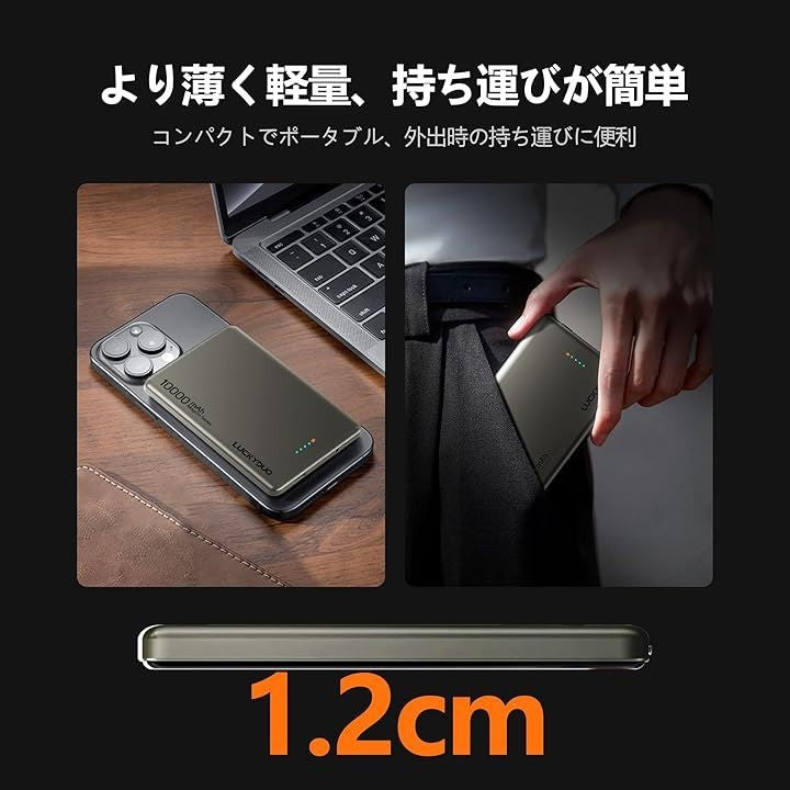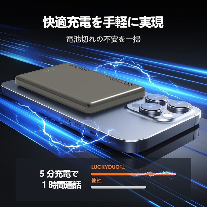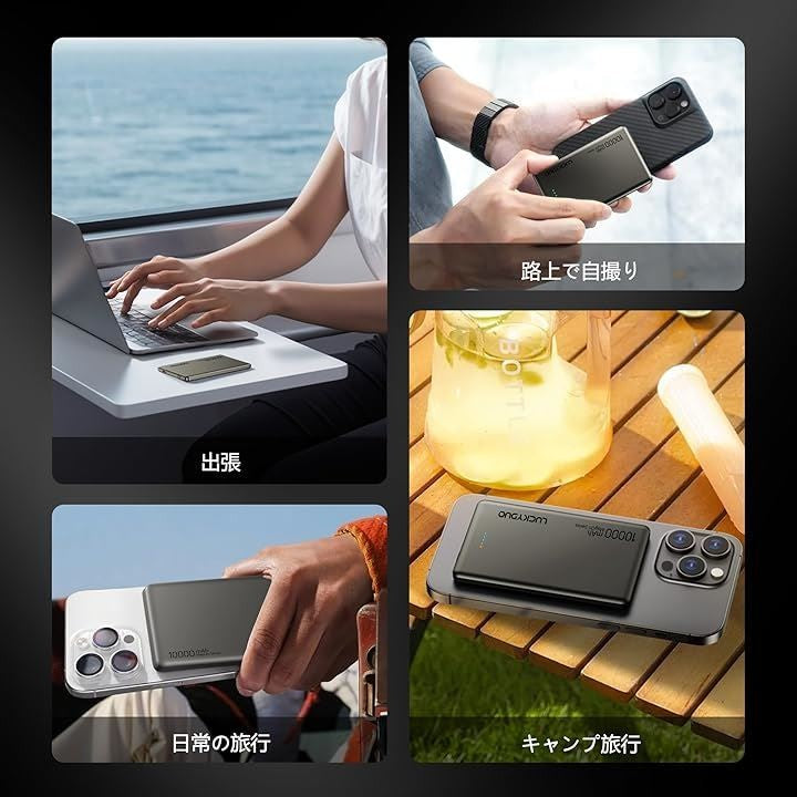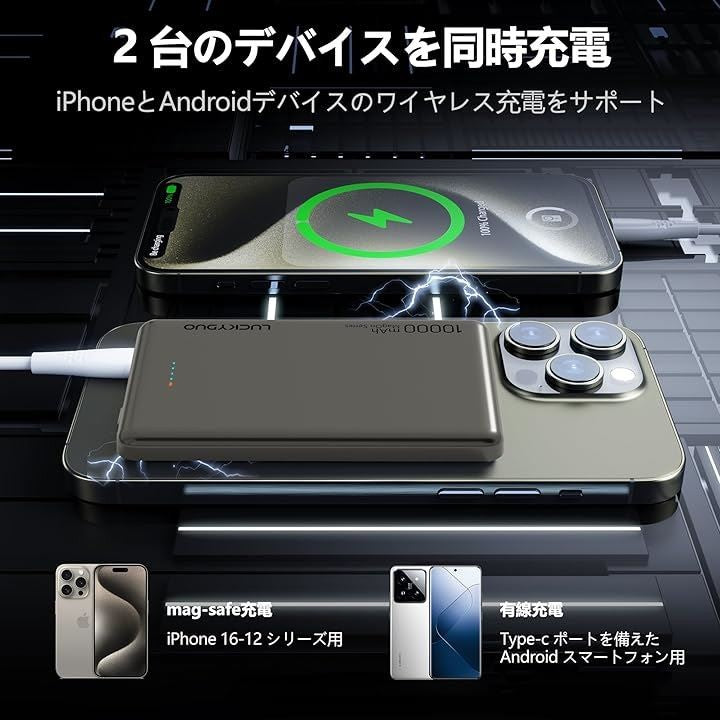 LUCKYDUO Magon モバイルバッテリー 10000mAh 12MM 軽量薄型 モバイルバッテリー マグネット PD20W USB-c出力 ワイヤレス出力(15W for Android/7.5W for iPhone)/USB-Cポート入出力/PSE認証済み LED残量表示 |