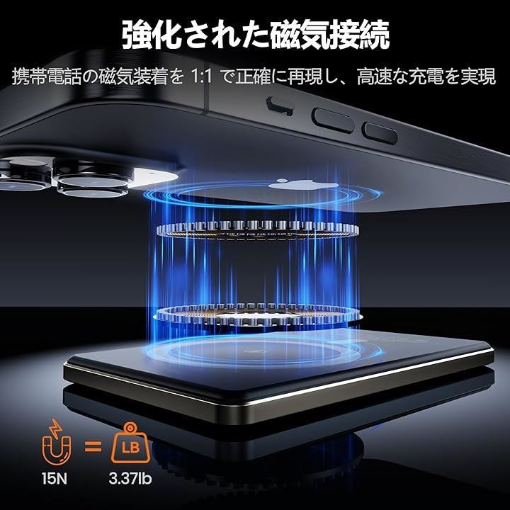 強力の磁力を内蔵されているため、落としにくいだけでなく、従来のモバイルバッテリーよりは厄介な充電ケーブルの抜き挿し必要なく、デバイスの位置も調整する必要もなく、くっつけてまま充電開始します。