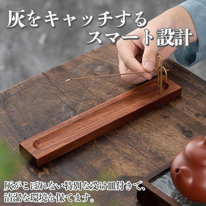 横型 お香立て シンプル インテリア 天然木 台座 リビング 寝室 ヨガ 瞑想 リラックス 灰受け 簡単 玄関 和室