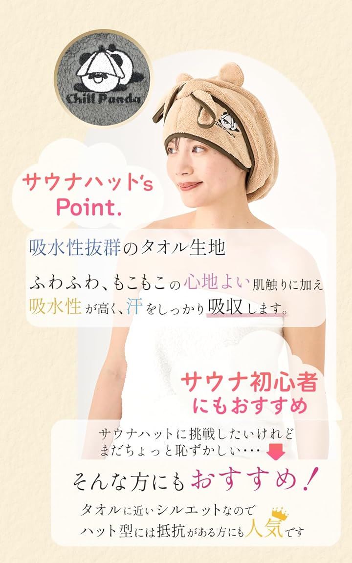 サウナハット ヘアターバン レディース お風呂 吸水 チルパンダ