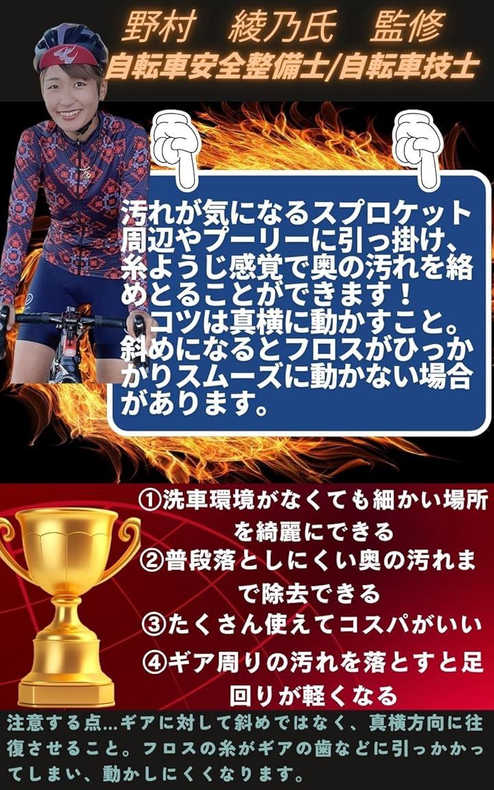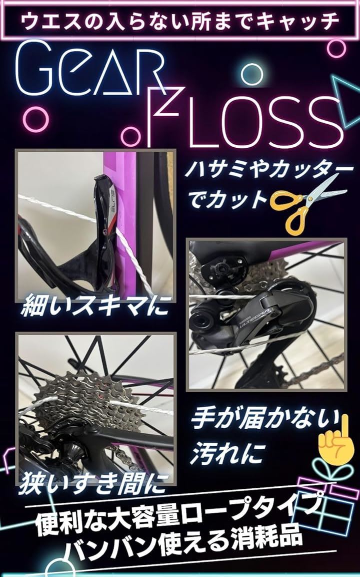 自転車 ギア 掃除 フロス クリーニング 洗浄 隙間 クリーナー すき間