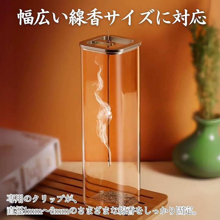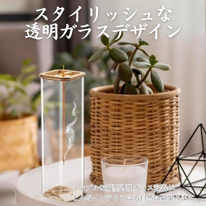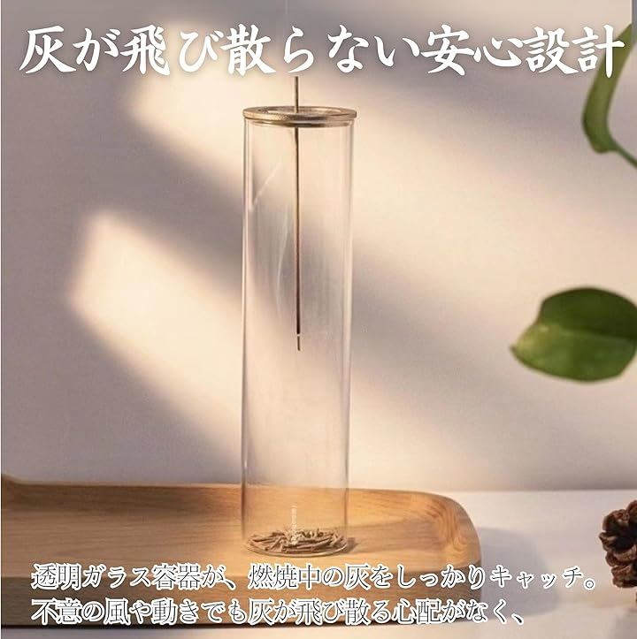ガラス製 お香立て 吊り下げ式 灰 飛び散り防止 シンプル モダンデザイン 簡単お手入れ 線香対応 玄関 リビング 癒し