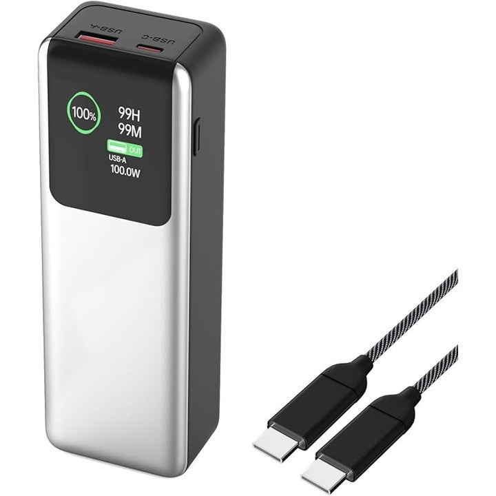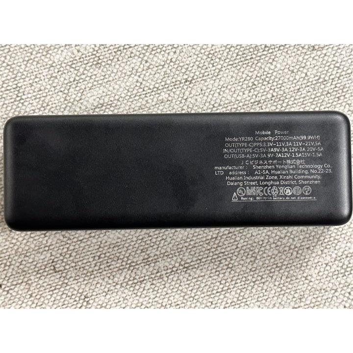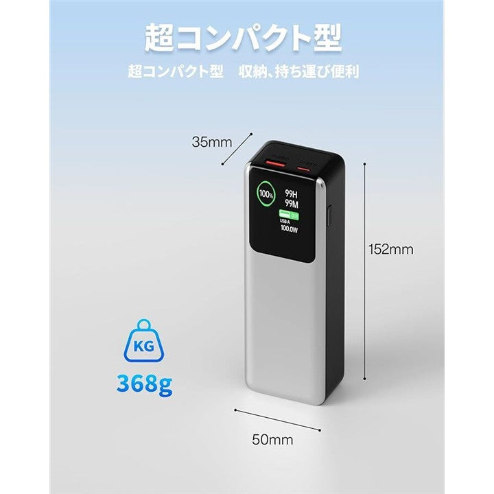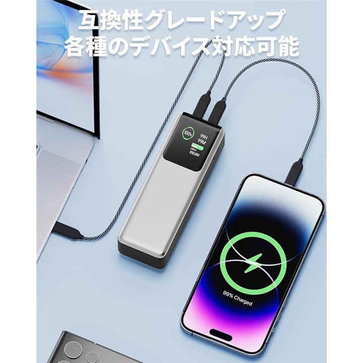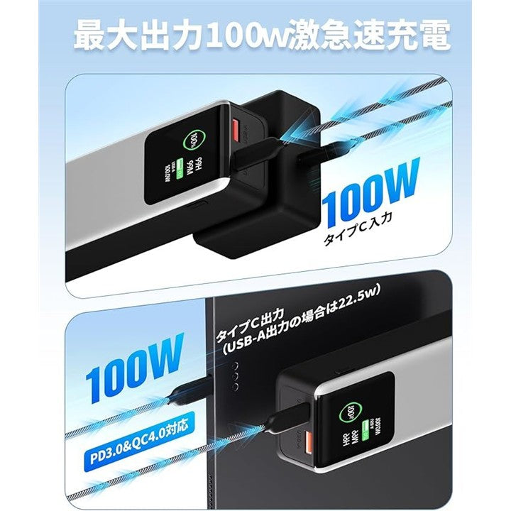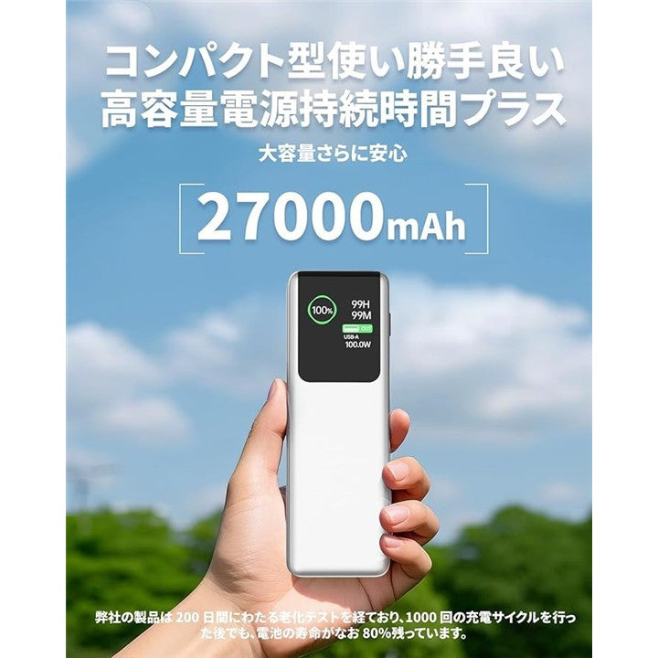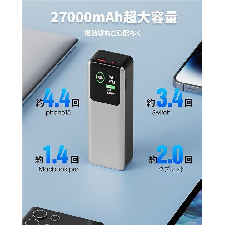 27000mAh 大容量モバイルバッテリー 超充電力 PD100w 急速充電技術 2ポート付きType-C入出力&USB出力ポート付き2台同時充電可能 LCDデジタル残量表示 ケーブル付き コンパクト小型 持ち運び便利 日本語取扱説明書
