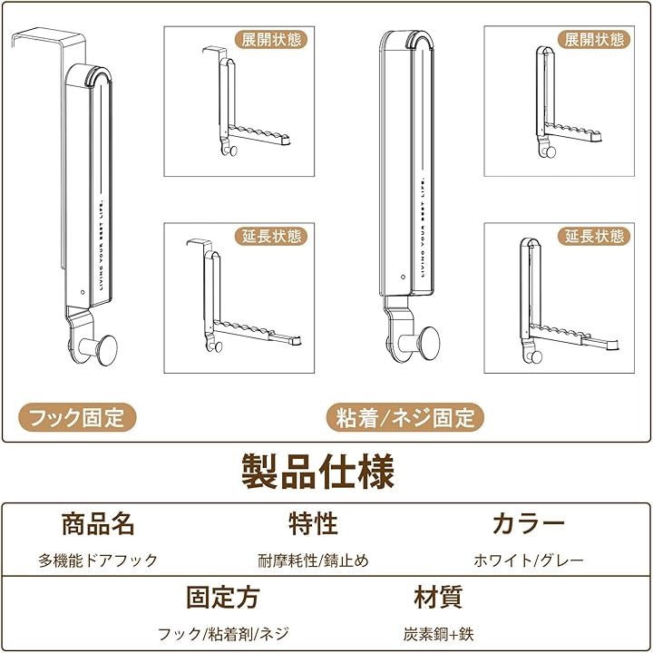 ドアハンガー ロング ドアフック 吊り下げ 扉 ドア掛けフック ドアに掛けるフック