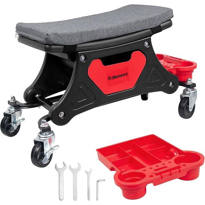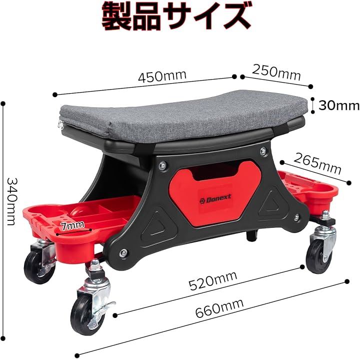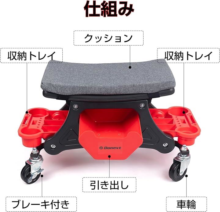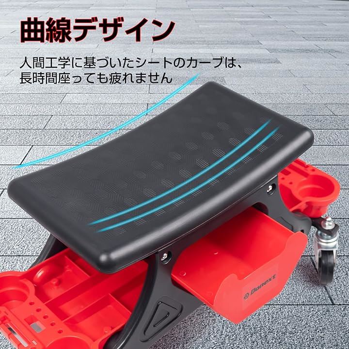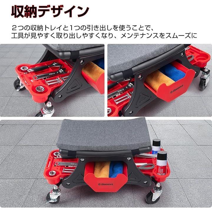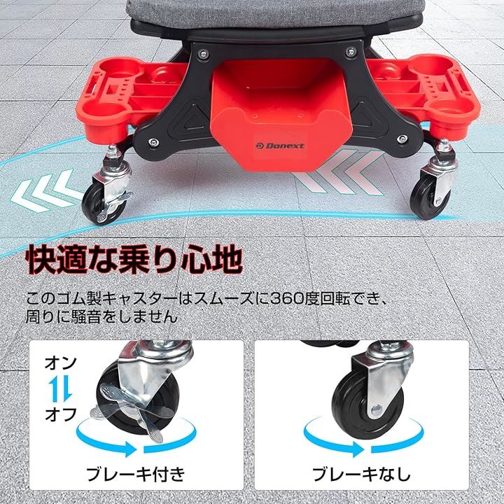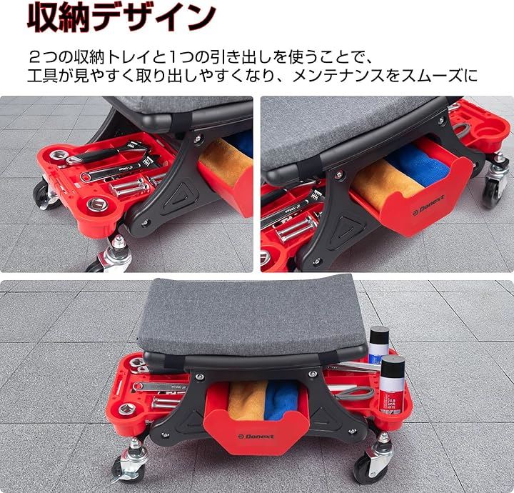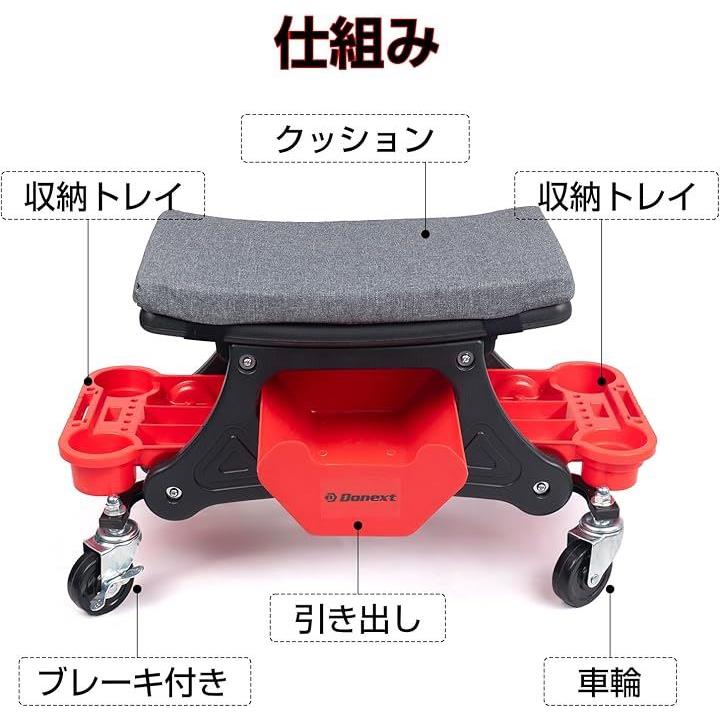 メカニックシート ローラーシート 作業椅子 耐荷重150kg トレイ付き マット付き ブレーキ付きキャスター 360°回転 ワーキングチェア ツールチェア 洗車椅子 工具カート 工具入れ 収納