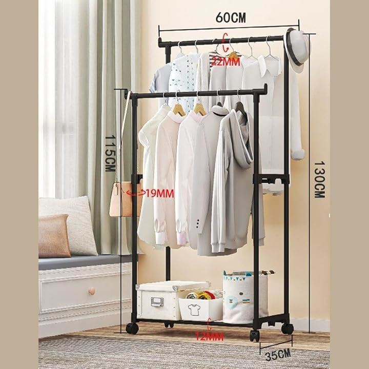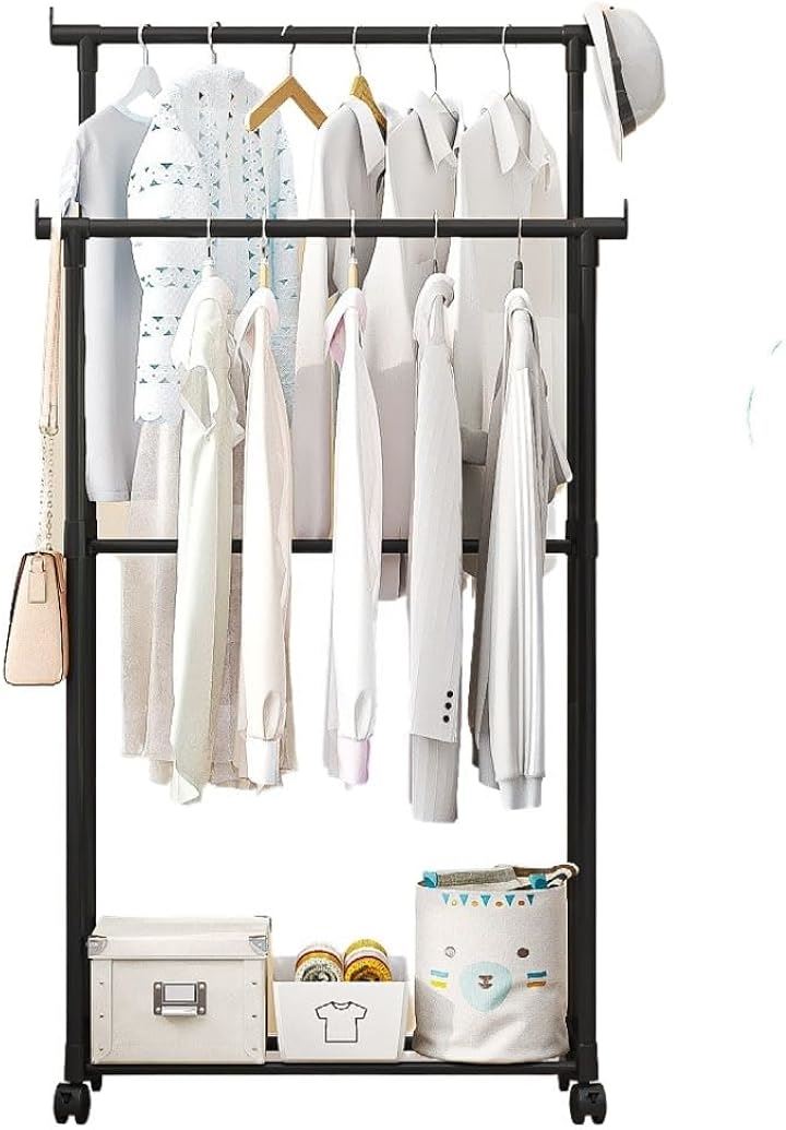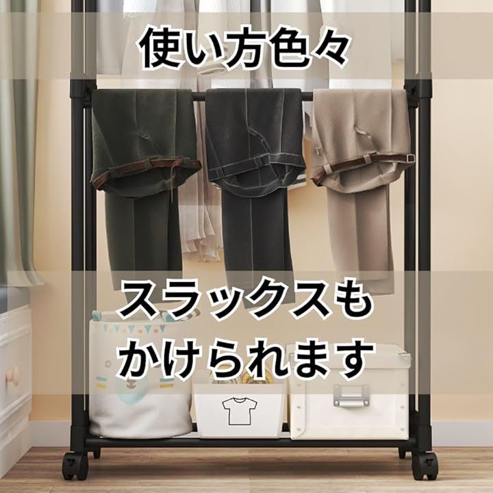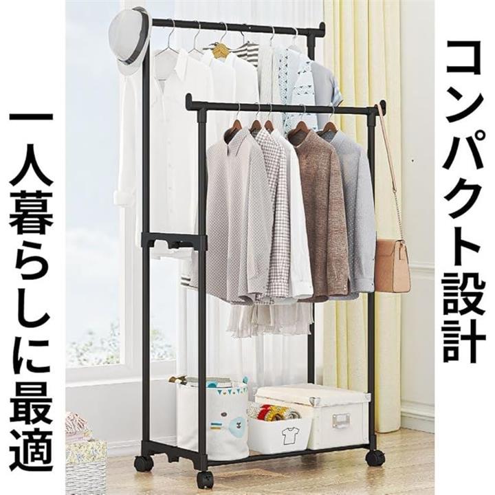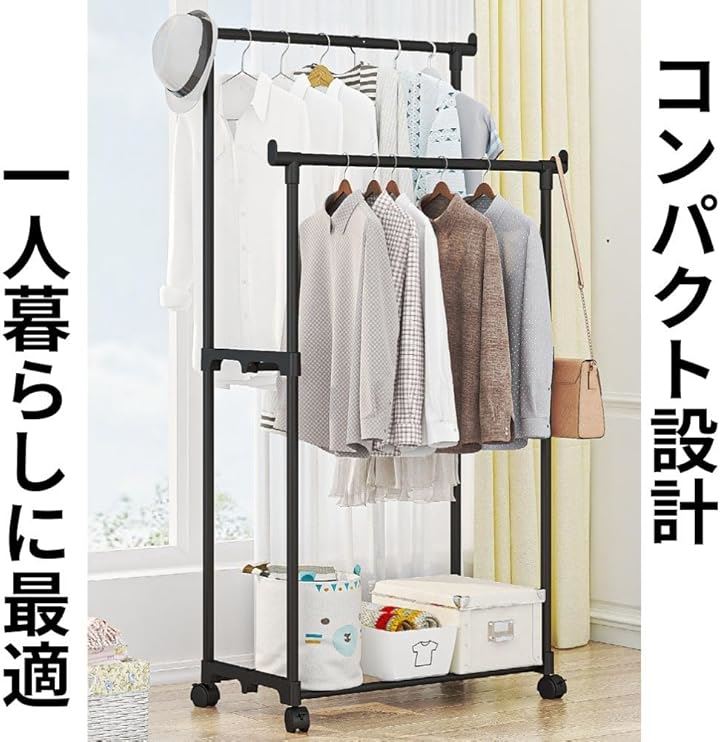 D.Stomo ハンガーラック ダブル 2段 キャスター付き ちょい掛け用 小さめサイズ 総耐荷重 省スペース 移動楽々 組み立て簡単 単身向け
