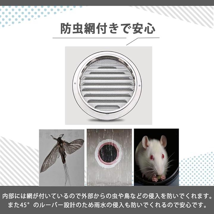 ダクト 通気口 換気口 ステンレス製 丸型 屋内換気口 配管部品用 防虫網付 ダクト用換気口