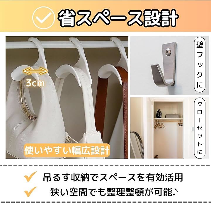 バッグハンガー バッグフック スカーフ 収納 おしゃれ 10個セット 白