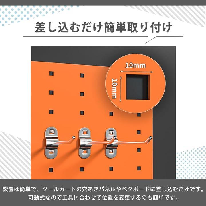 ツールカート用フック 工具 アクセサリー 整理 シングルフック ステンレス 壁掛け工具フック 6個セット