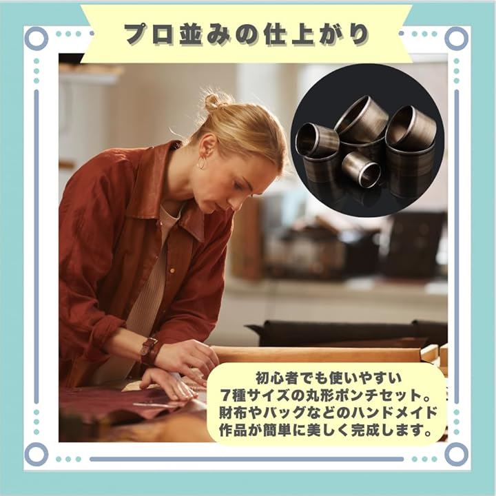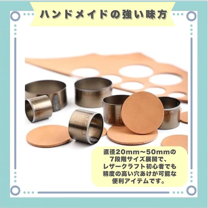 穴あけ ポンチ レザークラフト 皮革抜き工具 DIY 穴開け器 7点セット