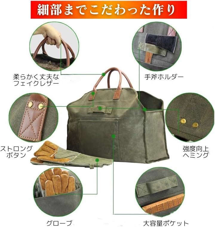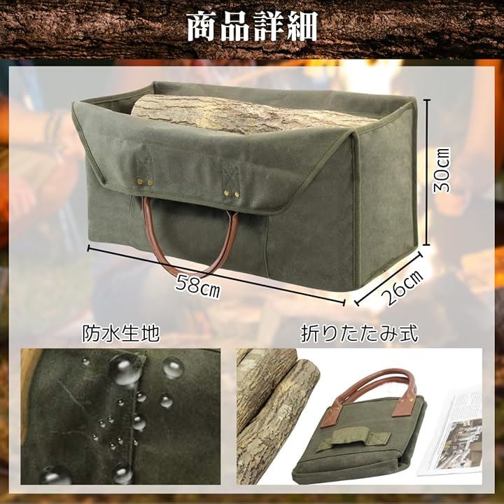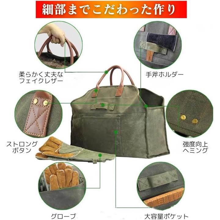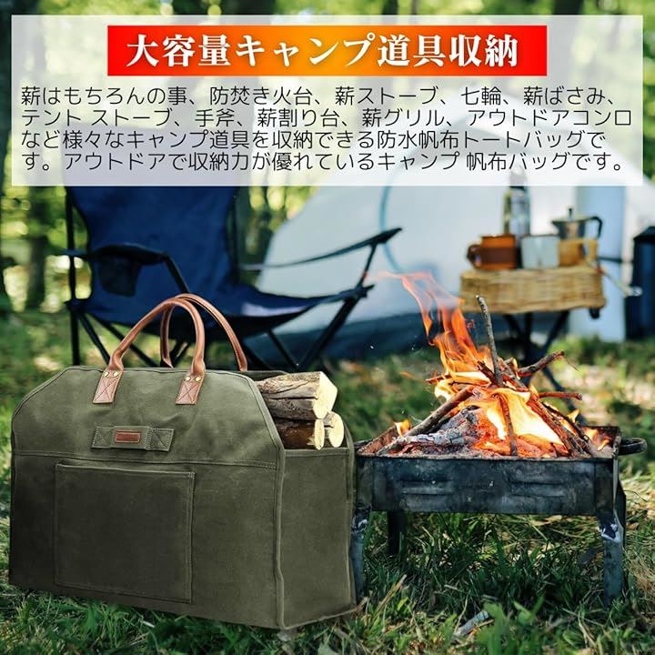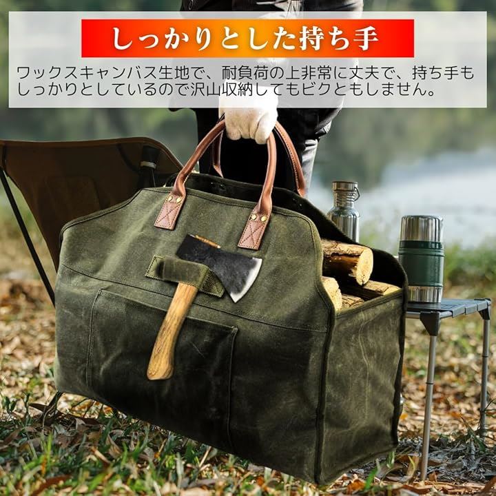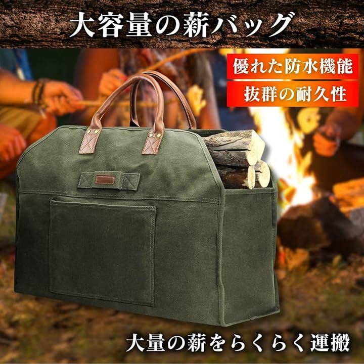 薪バック 薪入れ 薪ケース トートバック 持ち運び 防水 収納 大容量 キャンプ 丈夫 アウトドア 手持ち ログキャリー 帆布 炭 暖炉