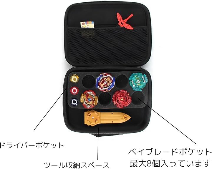 ベイブレードケース ポータブル 持ち手付き 衝撃吸収 内蔵スポンジ 耐久性 収納ケース お子様のプレゼントに ブラック 最大8個ベイブレード収納