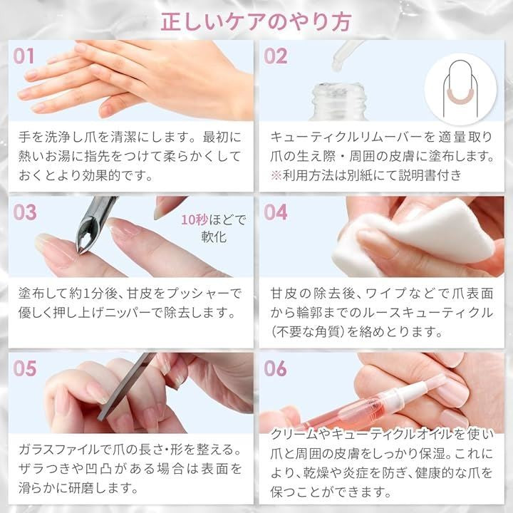 ネイル プッシャーがなくても、簡単に甘皮を除去でき、爪ケアの時短に最適です。