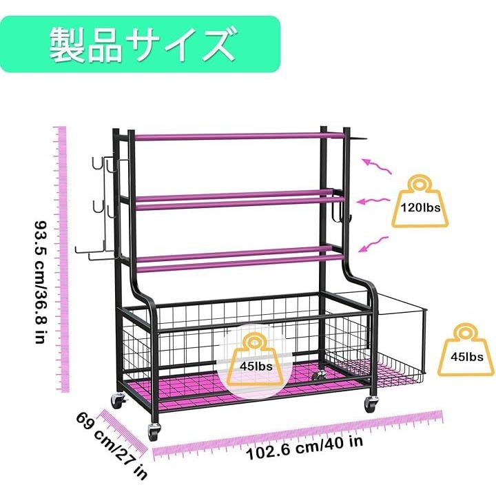 ダンベル収納 ヨガマット ウェイト ラック ホイールとフック付き ジム収納 ヨガ用具収納 ヨガブロック フォームローラー ワークアウト機器収納オーガナイザー 自宅 ジム用