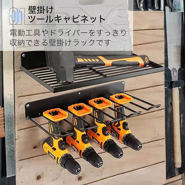 工具棚 壁掛け ツールラック 工具ラック 高強度 耐久性 耐腐食性 電動工具収納 取り付け簡単 DIY 40x20 cm