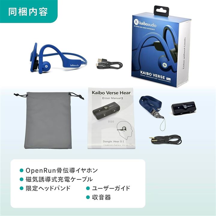 KAIBOAUDIO 骨伝導 ワイヤレスイヤホン 特許取得済み 骨伝導技術 Bluetooth5.2 サウンド 連続使用 10時間 耳を塞がず 耳にやさしく フィット 防水防塵性能 IP55 オープンイヤー ヘッドホン Verse
