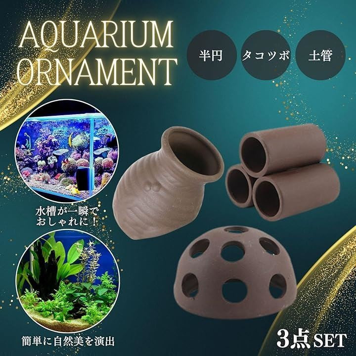 アクアリウム 水槽 隠れ家 土管 トンネル エビ 金魚 メダカ ドジョウ ウーパールーパー タコツボ オブジェ 3セット