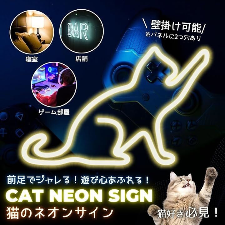 ネオンサイン 猫 ネオンライト 壁掛け インテリア ねこ ネオン管 ネオンランプ led USB