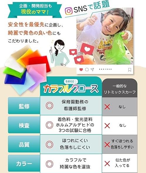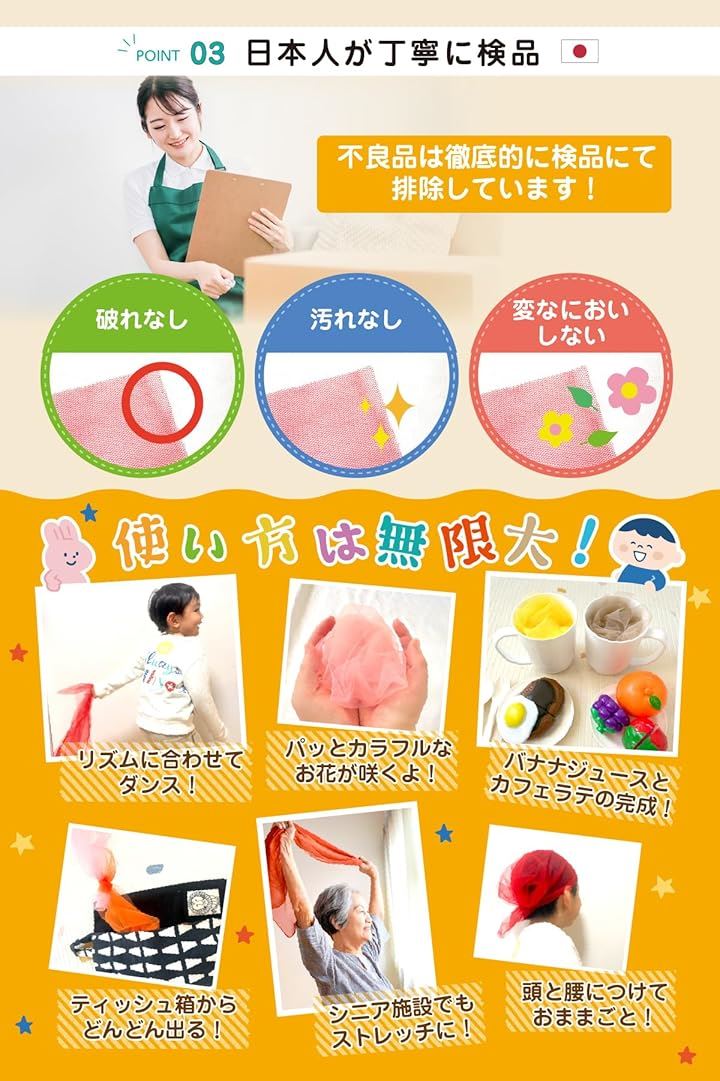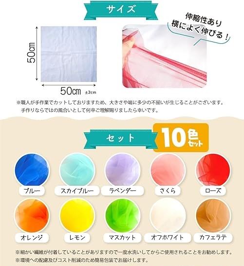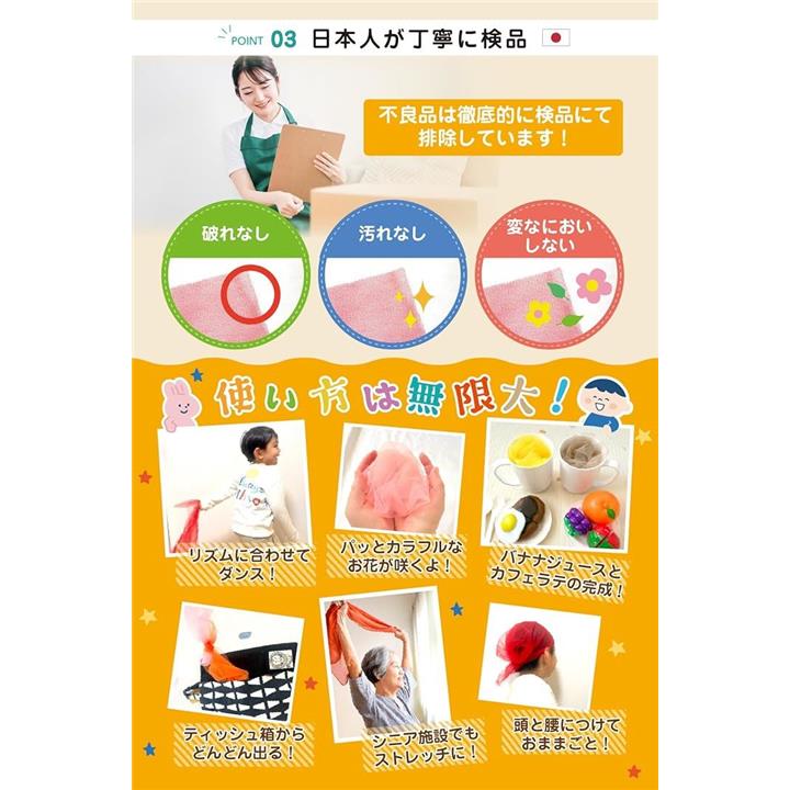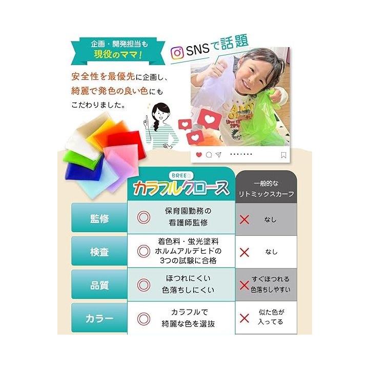 品質検査合格 看護師監修リトミックスカーフ カラフルクロース 10色セット ほつれない 破れない