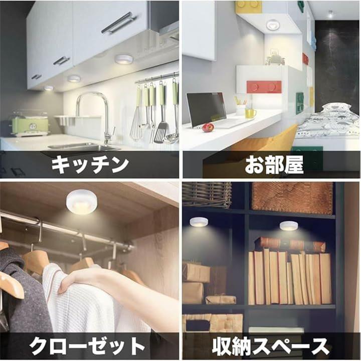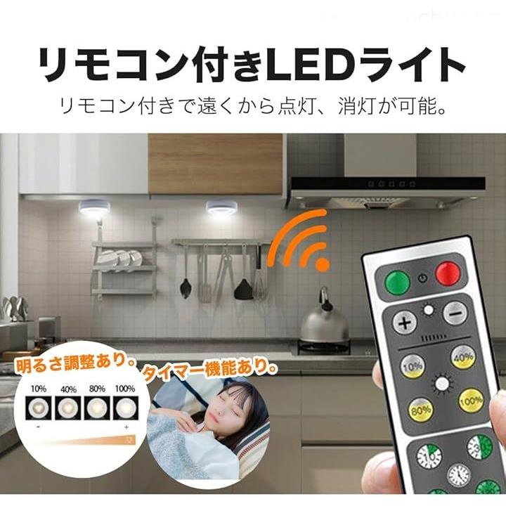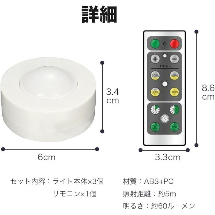 LED プッシュライト3個セット リモコン付き 調光 タイマー機能 高輝度 両面テープ 電池式 夜間照明
