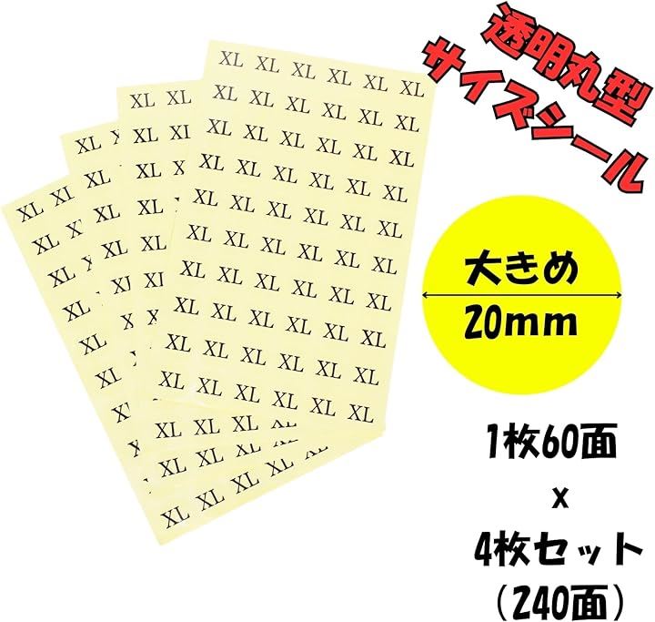 サイズシール 業務用 アパレル 丸 透明 60面 4枚 20mm a211