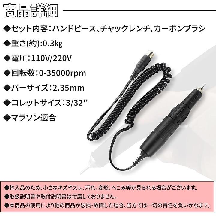 互換品高トルクハンドピース 35000rpm φ2.35mm マイクロモーター ネイル 彫金 カッティング プラモデル ガラス細工 研磨