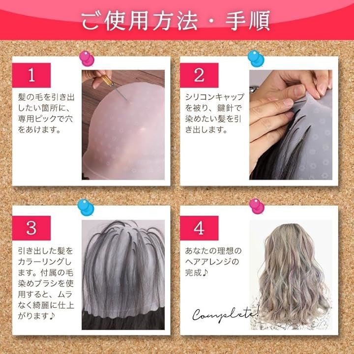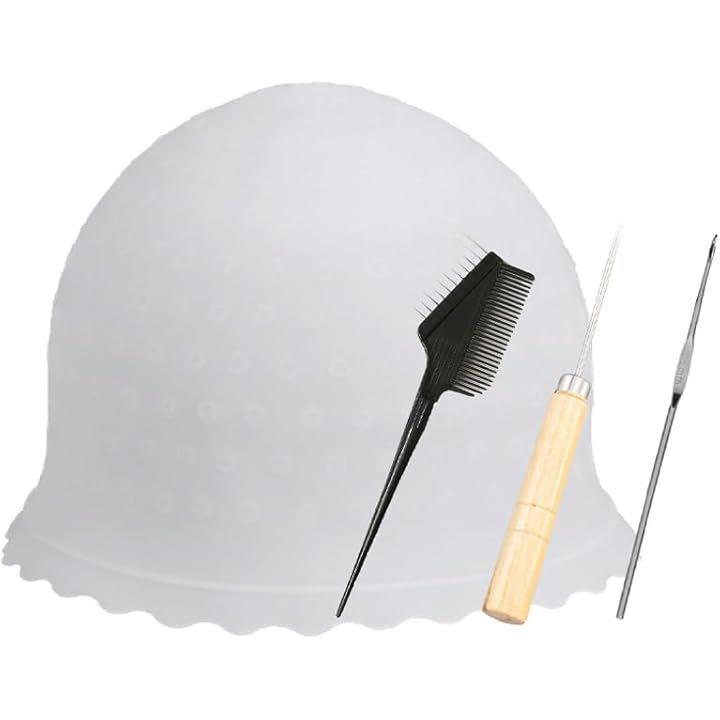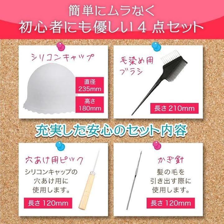 ヘアカラー 4点セット メッシュ キャップ ハイライト ブリーチ 毛染め 髪染め 色抜き 穴あき 針付き セルフ