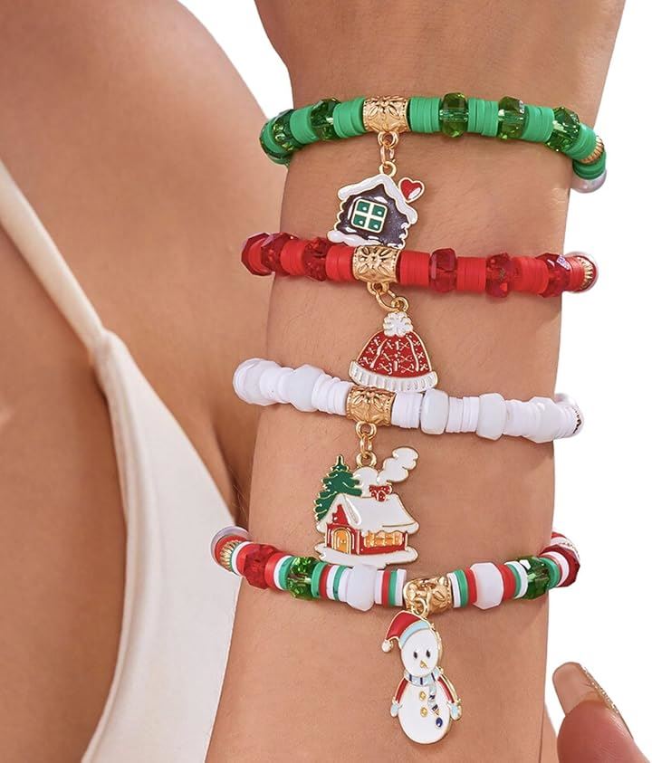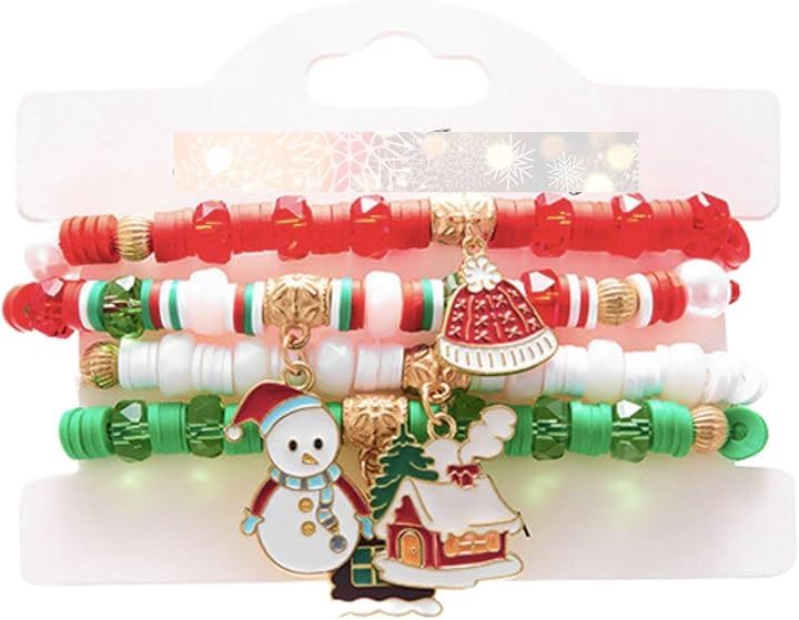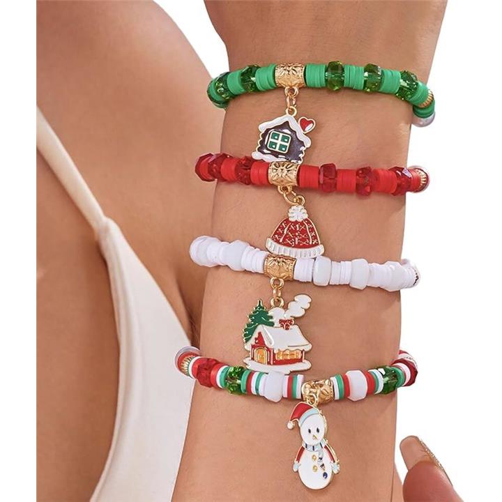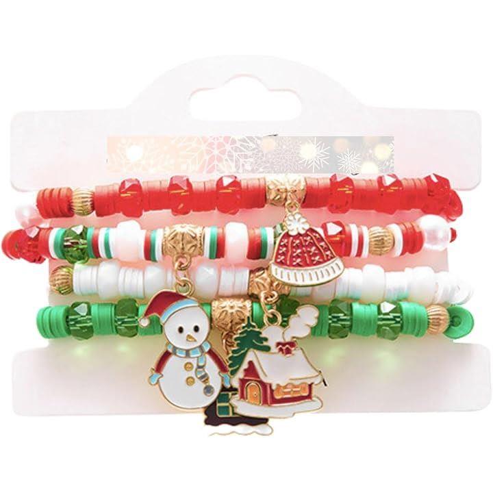 クリスマス ブレスレット ビーズ サンタ ツリー ボヘミアン 4ピース レイヤー ハンドメイド レディース ジュエリー アイテム