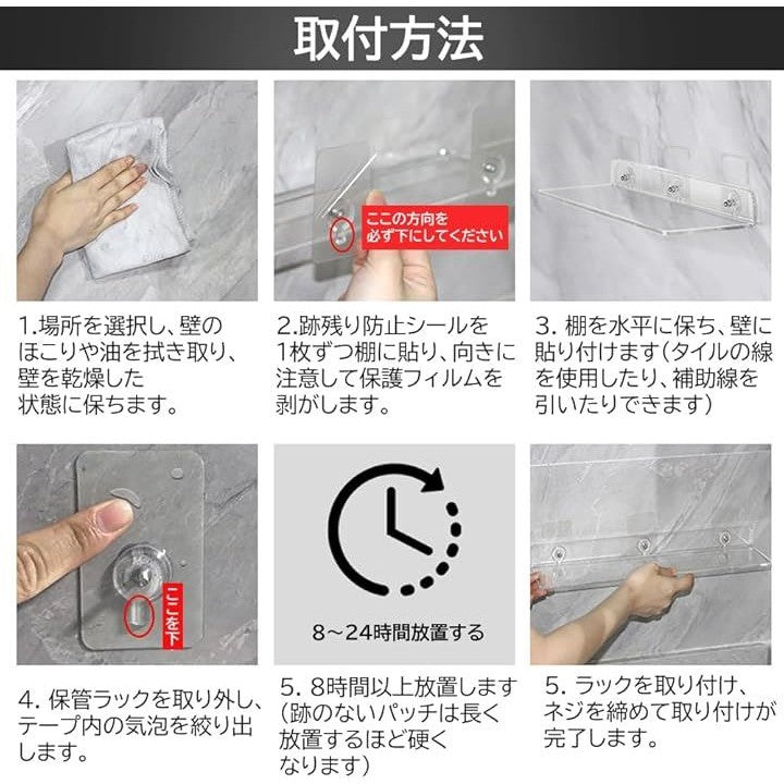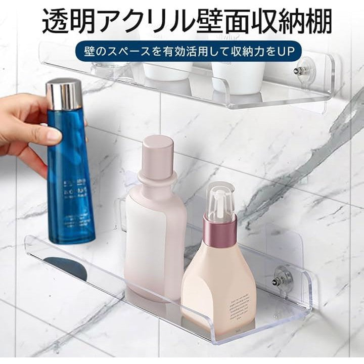 アクリル ウォールシェルフ 壁面収納 棚 お風呂 ラック トイレ 壁掛け棚 ウォールラック穴開け不要
