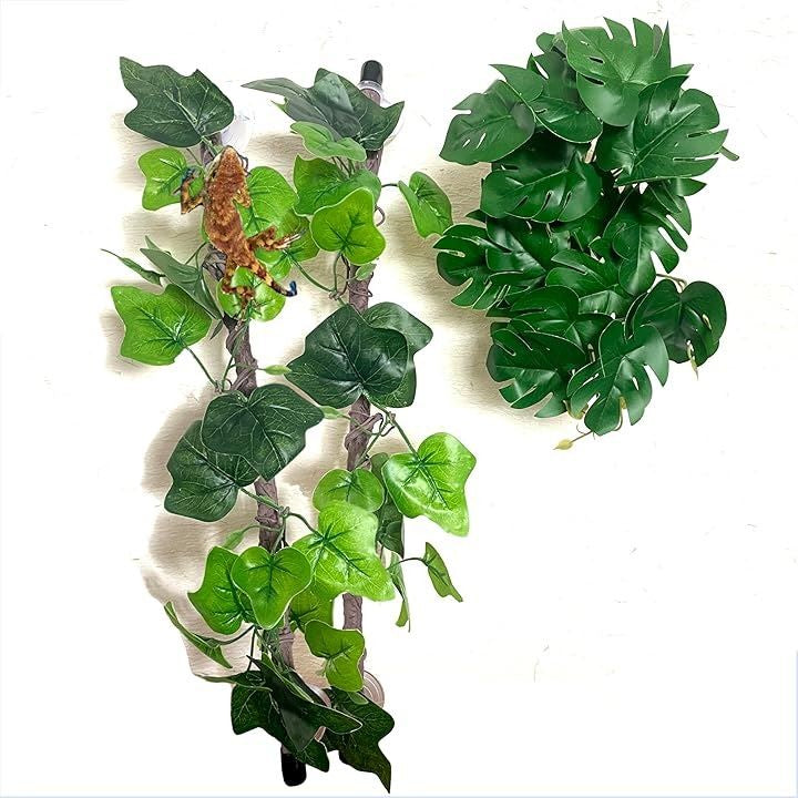 爬虫類 登り木 枝 葉 流木 シェルター ビバリウム 人工植物 吸盤付き