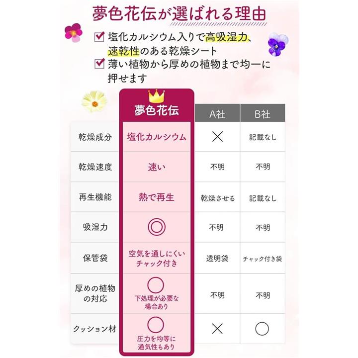 押し花キット 乾燥シート 押し花用乾燥シートセット 繰り返し使える 塩化カルシウム入り 乾燥シート6枚 クッションペーパー10枚 1冊+保管袋1枚付き