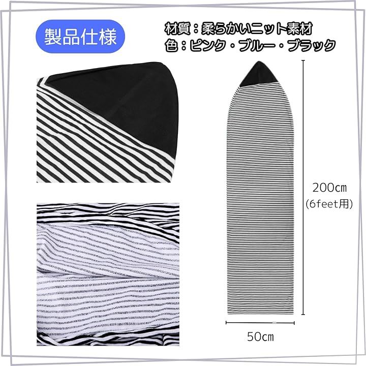 サーフ ボード サーフィン カバー ソックス ケース 収納 ソフト 6'6 ft ボーダー ニット
