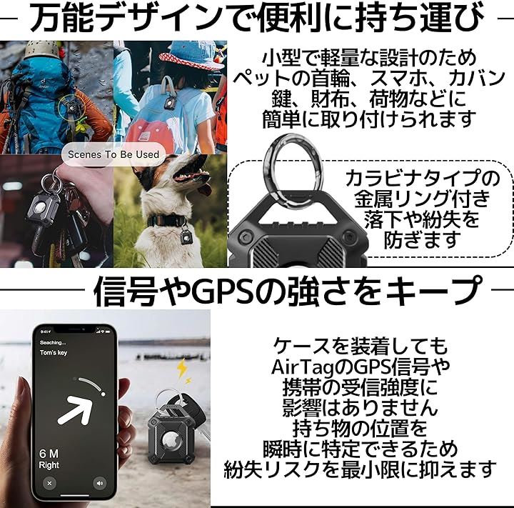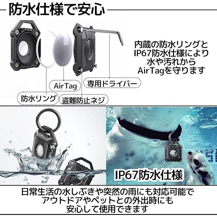 AirTag ケース エアタグケース 保護 キーホルダー 防水 防塵 耐衝撃 紛失防止 おしゃれ 黒 IP67