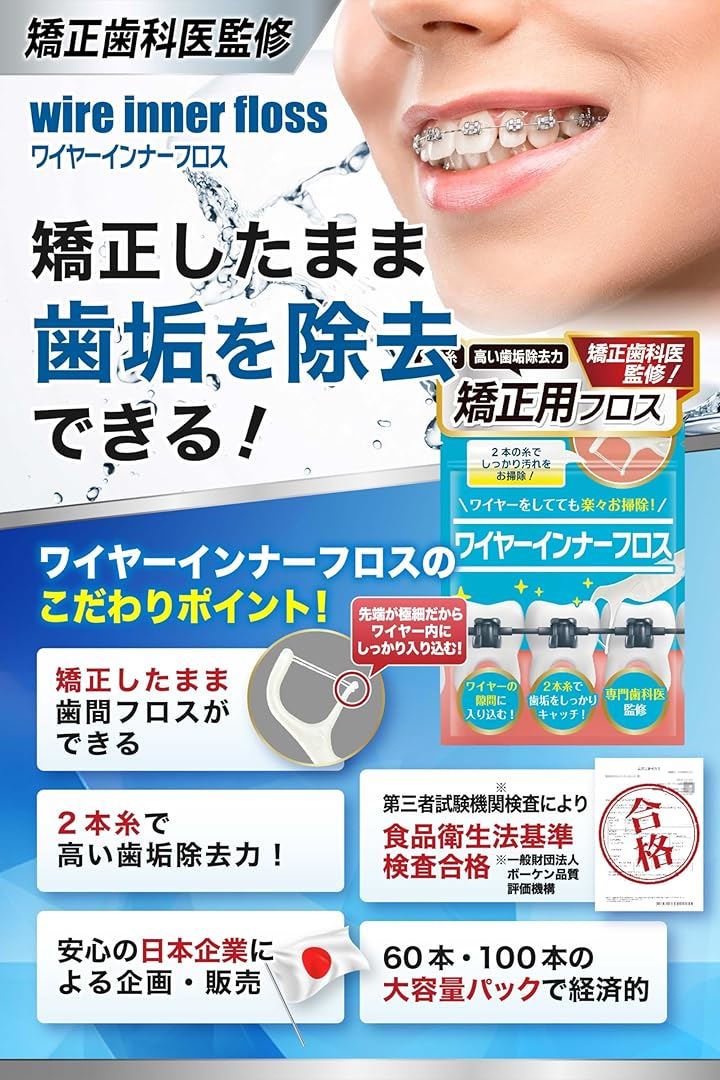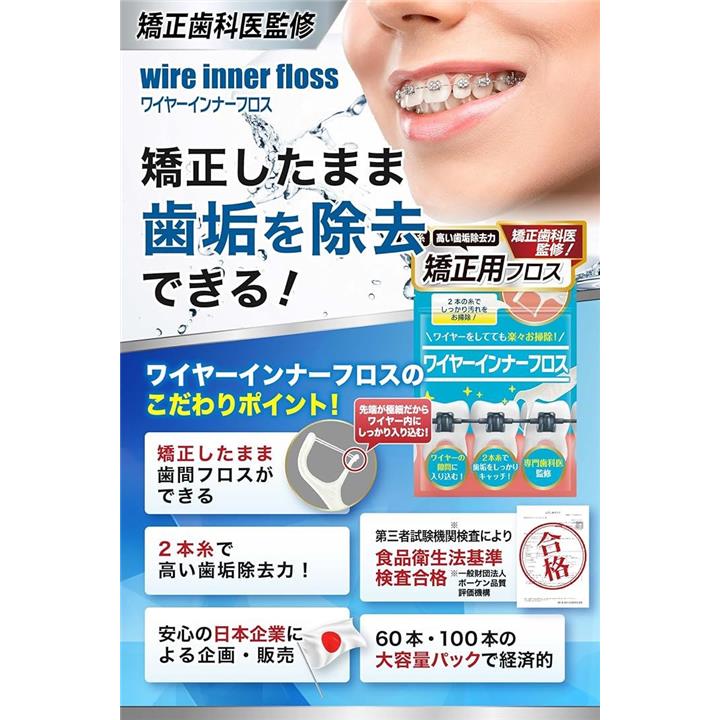 矯正用フロス 60本入り歯とワイヤーの間にスルッと入る。