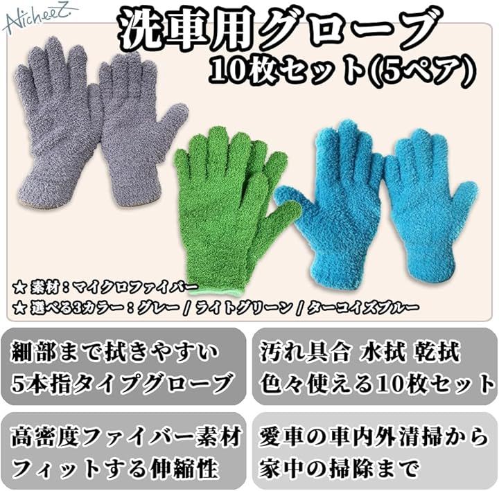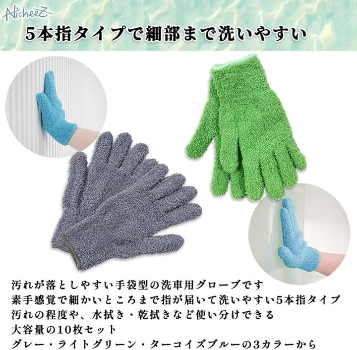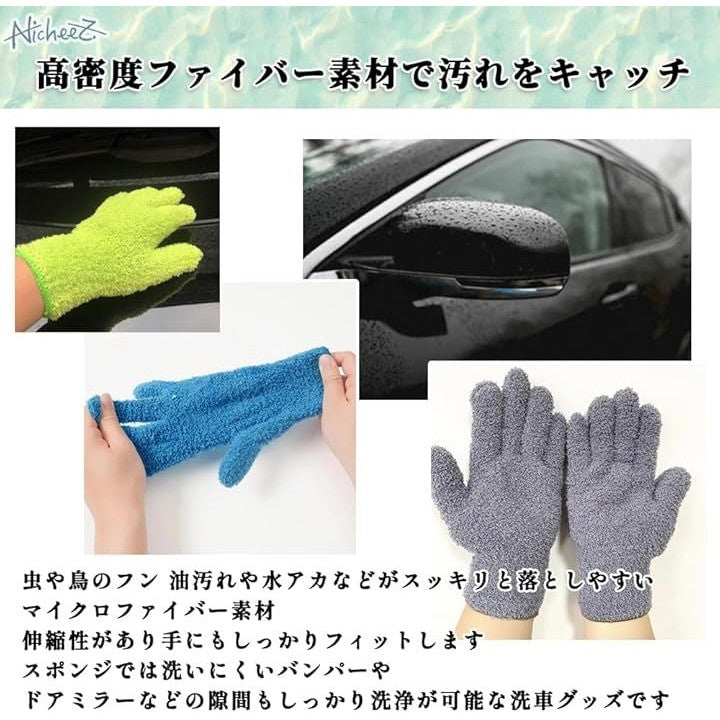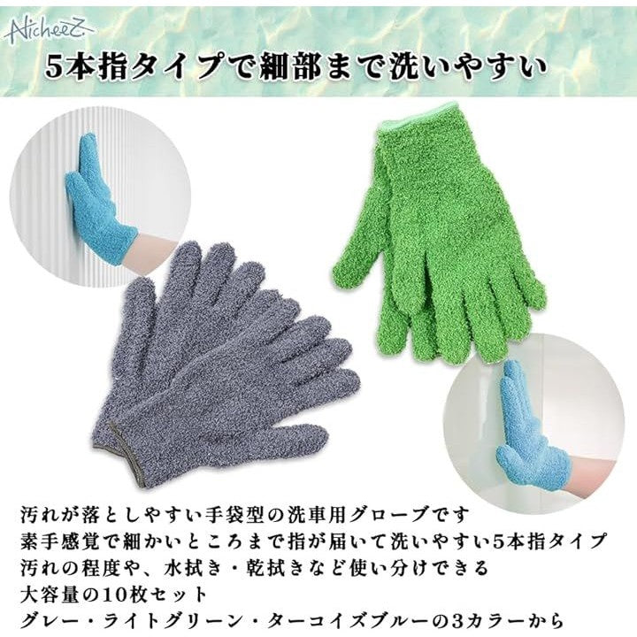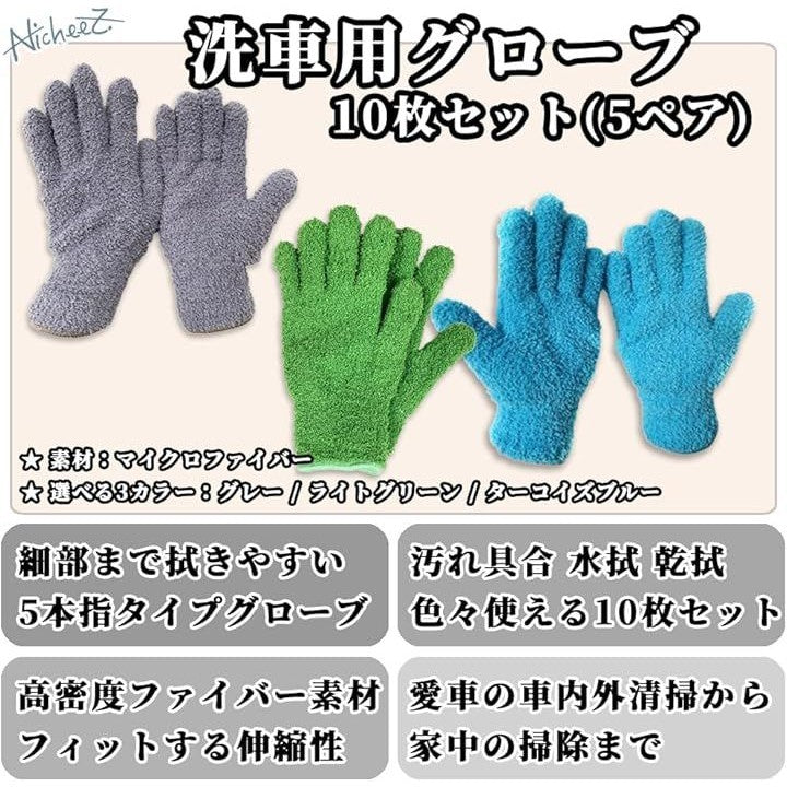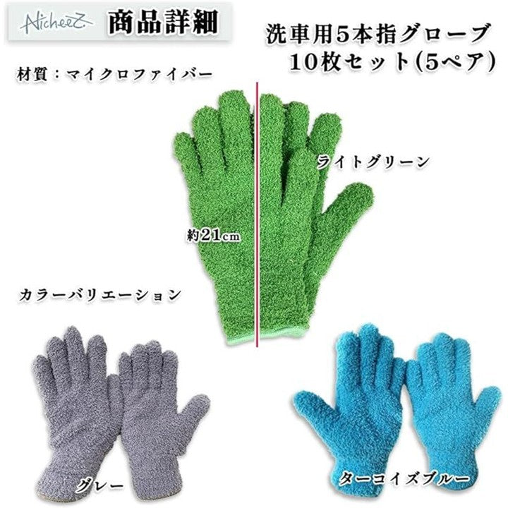 洗車グローブ マイクロファイバー 細部に届く手袋型 洗車スポンジ ミット 車内 窓 ホイール 5組10枚セット