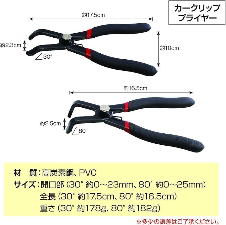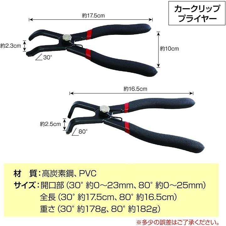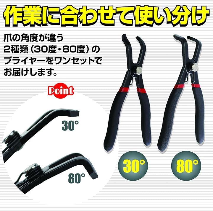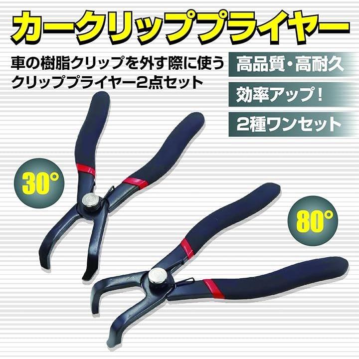 クリッププライヤー 車用 クリップ外し 専用工具 便利ツール 30° 80°